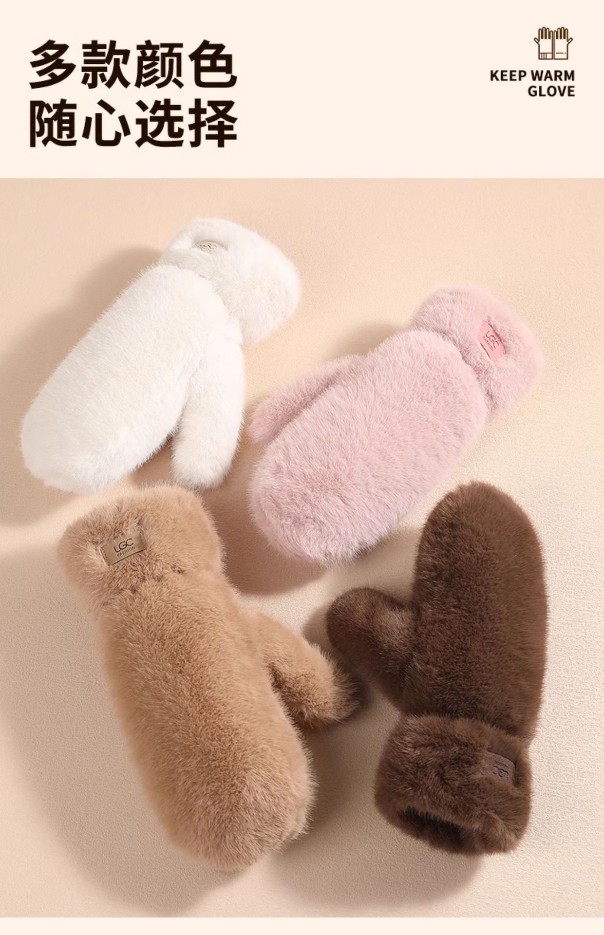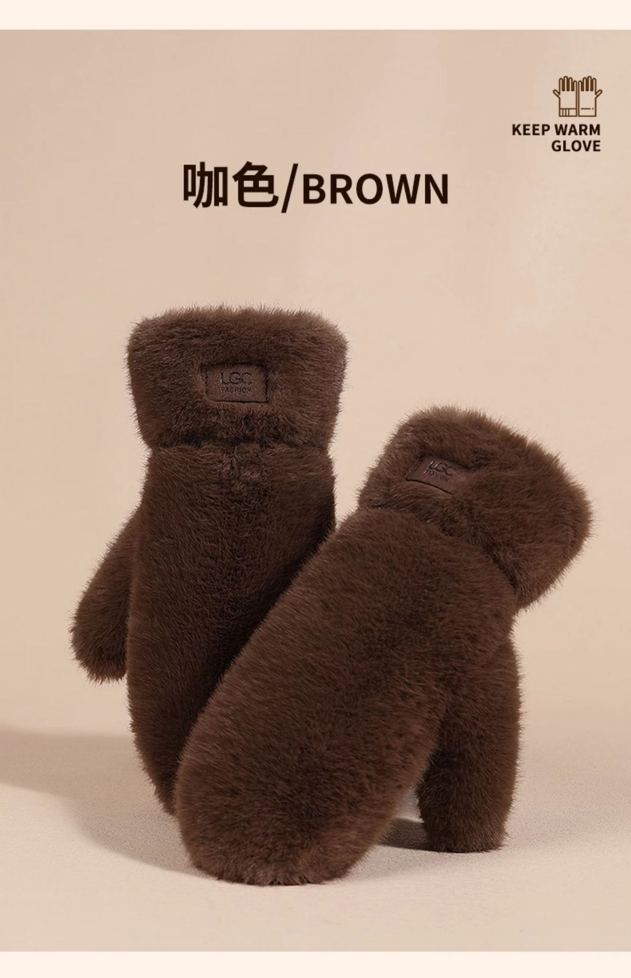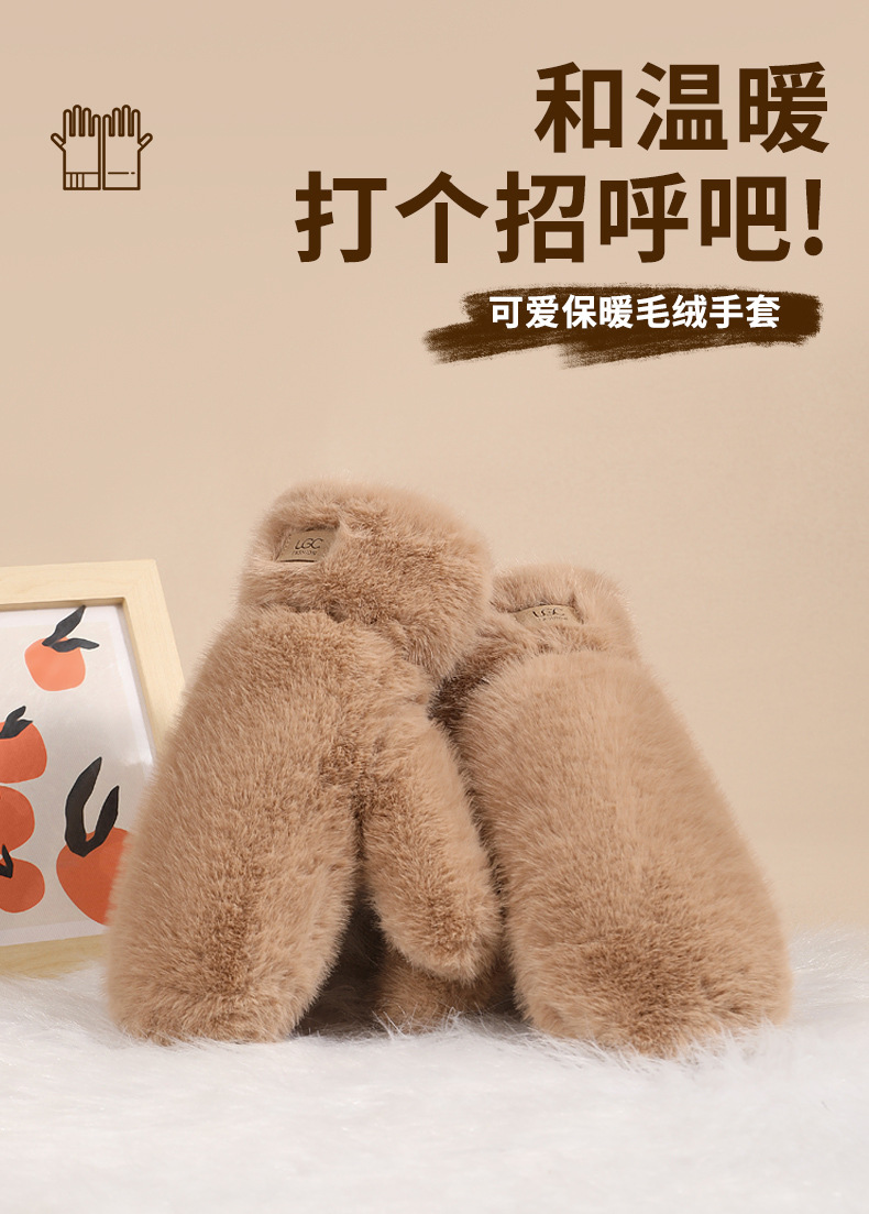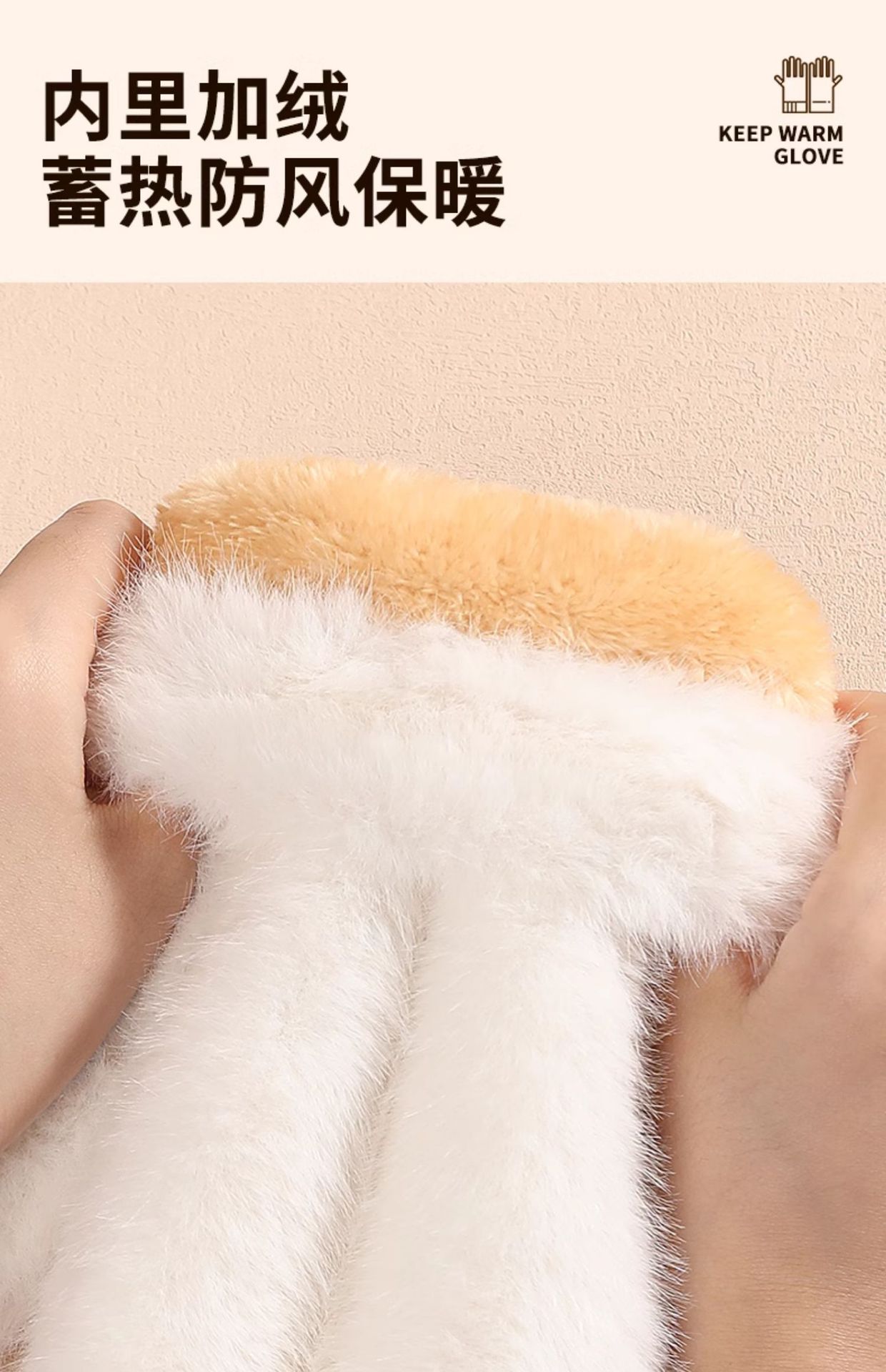 泰迪绒手套女冬季加绒加厚保暖连指手套防冻防寒毛绒可爱手闷跨境