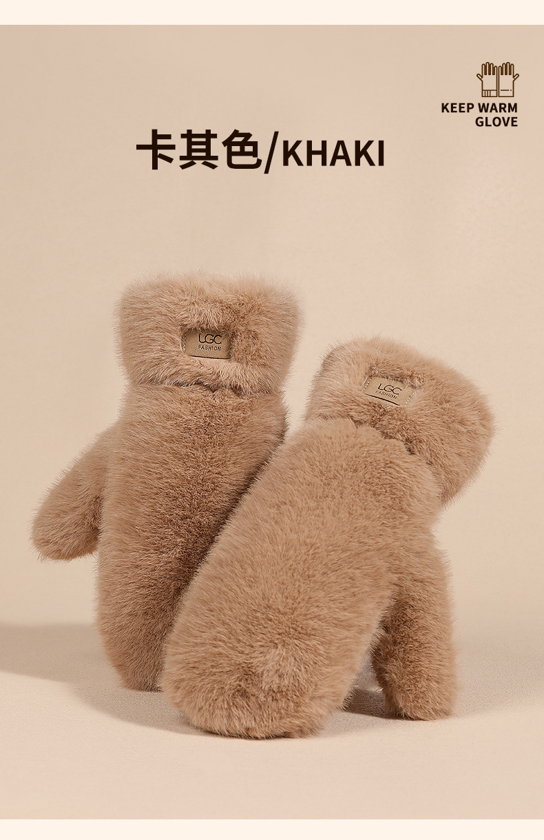 冬の新型シンプルな純色の厚いぬいぐるみ保温手袋学生ファッションかわいい防寒手袋卸売り