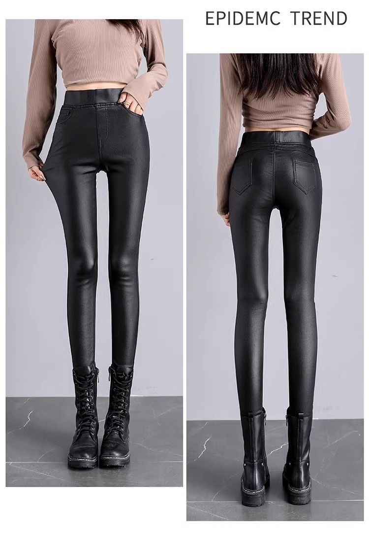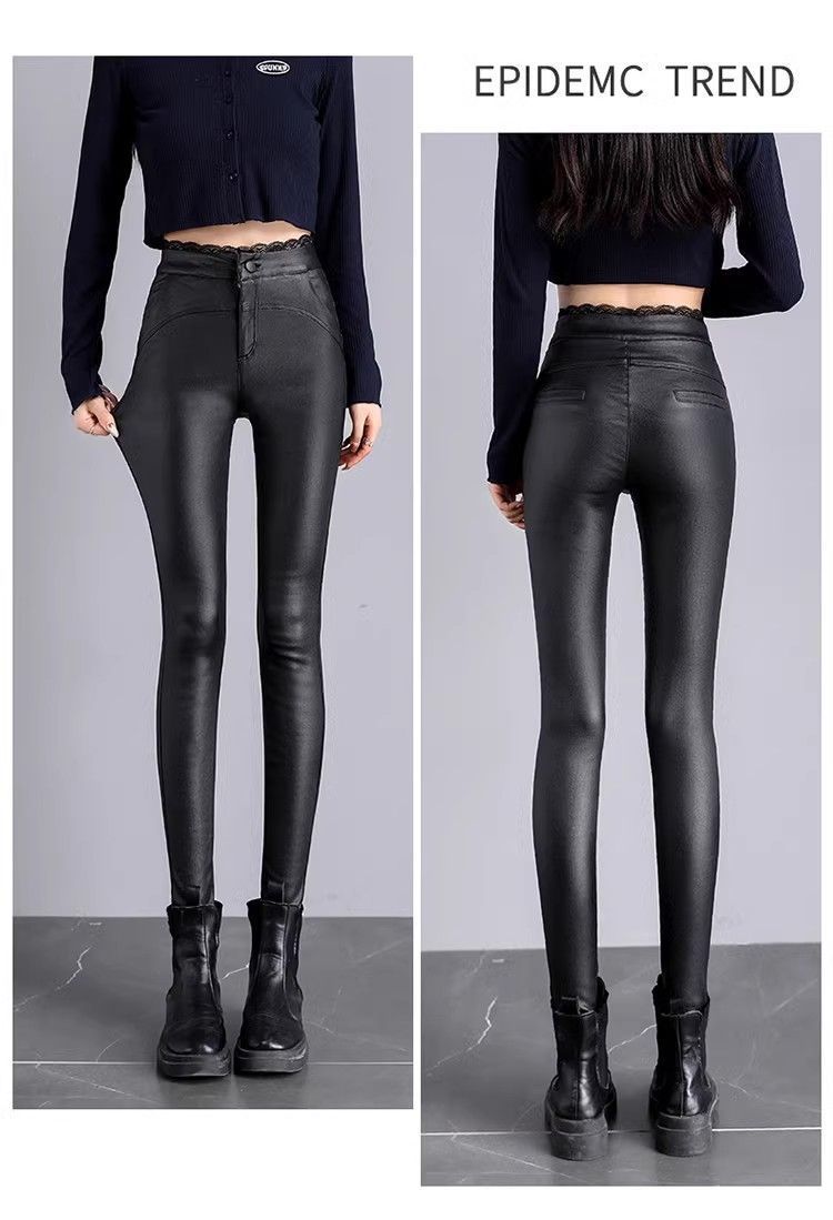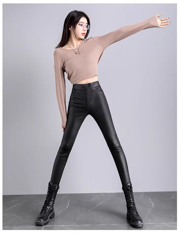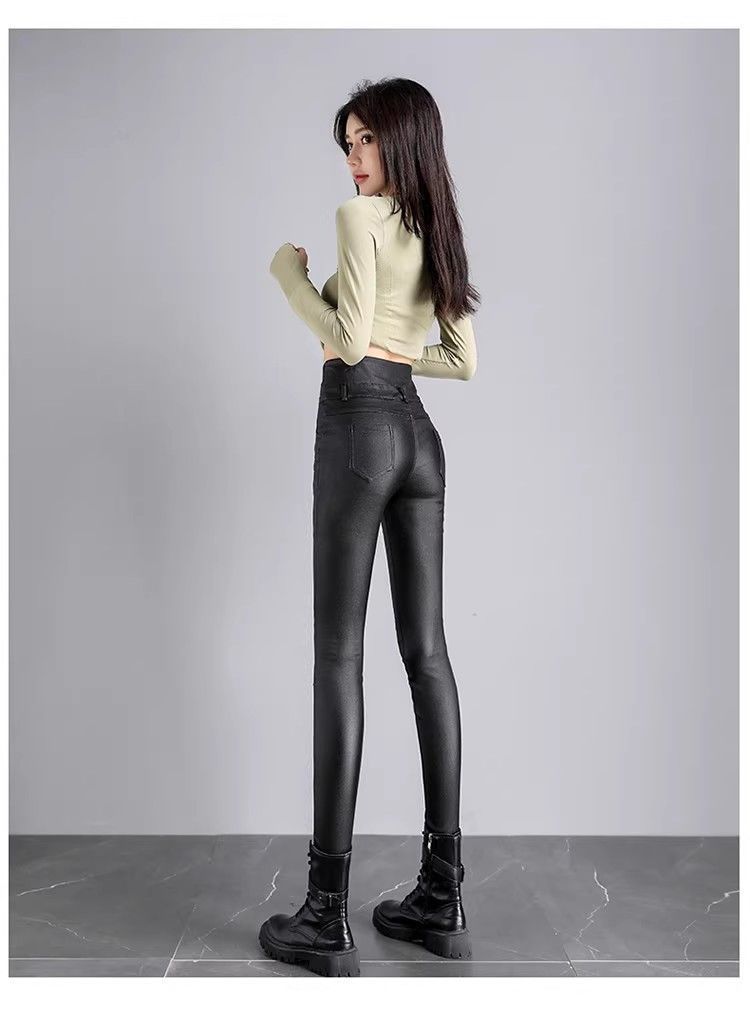 光沢のないレザーパンツ レディース 冬用 裏起毛 厚手 ハイウエスト アウター レギンス レディース 2025年 おしゃれ 細身 美脚