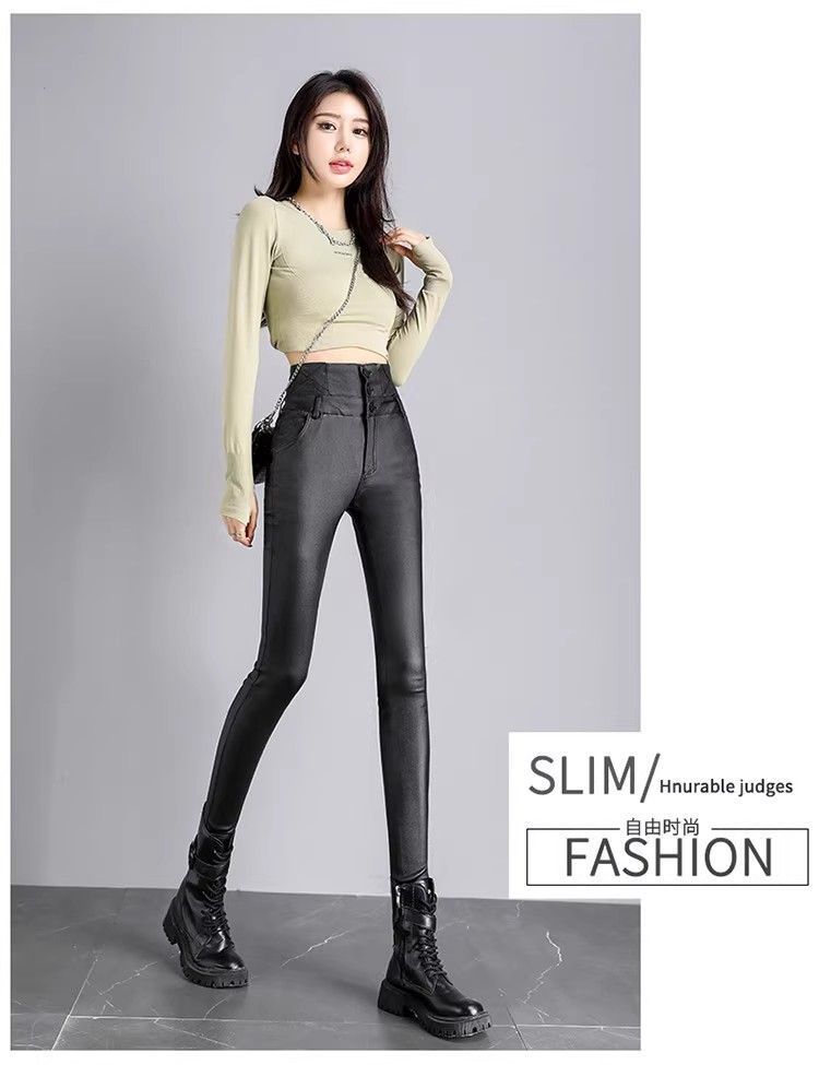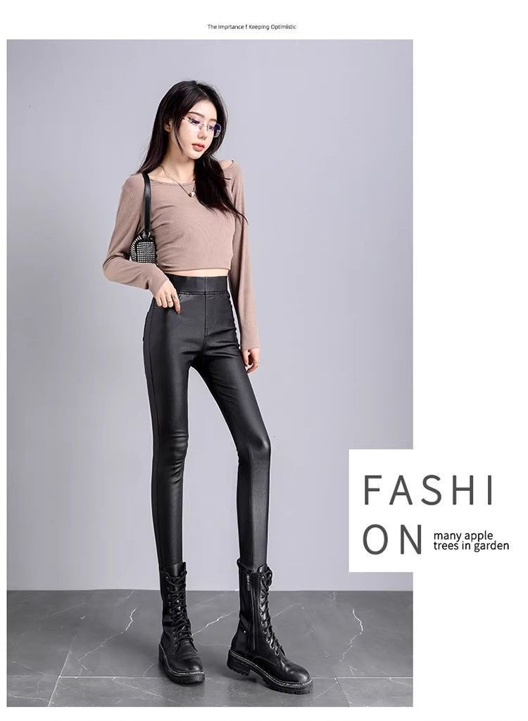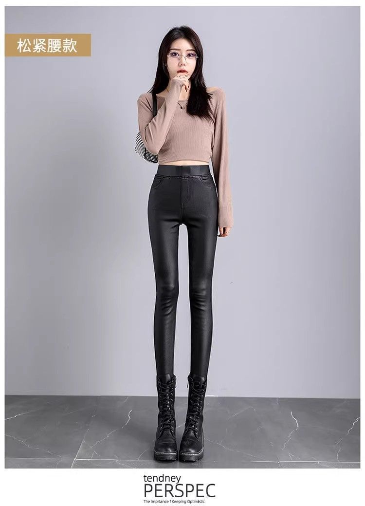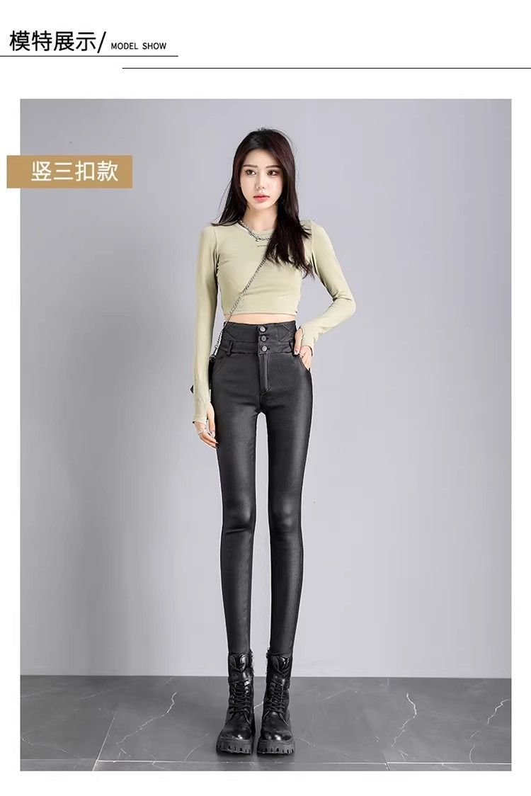 光沢のないレザーパンツ レディース 冬用 裏起毛 厚手 ハイウエスト アウター レギンス レディース 2025年 おしゃれ 細身 美脚