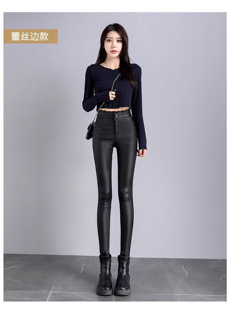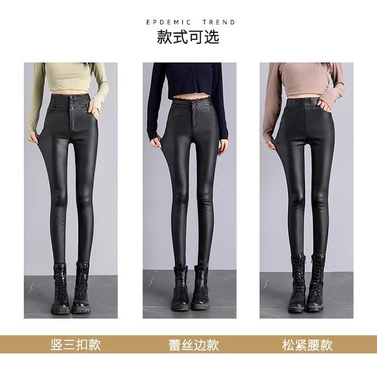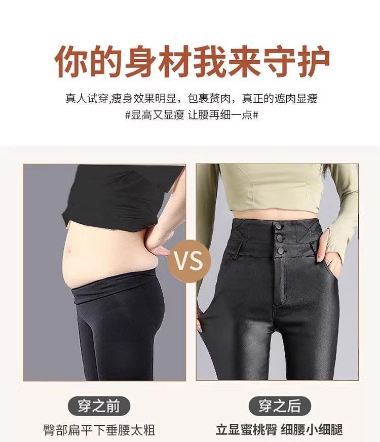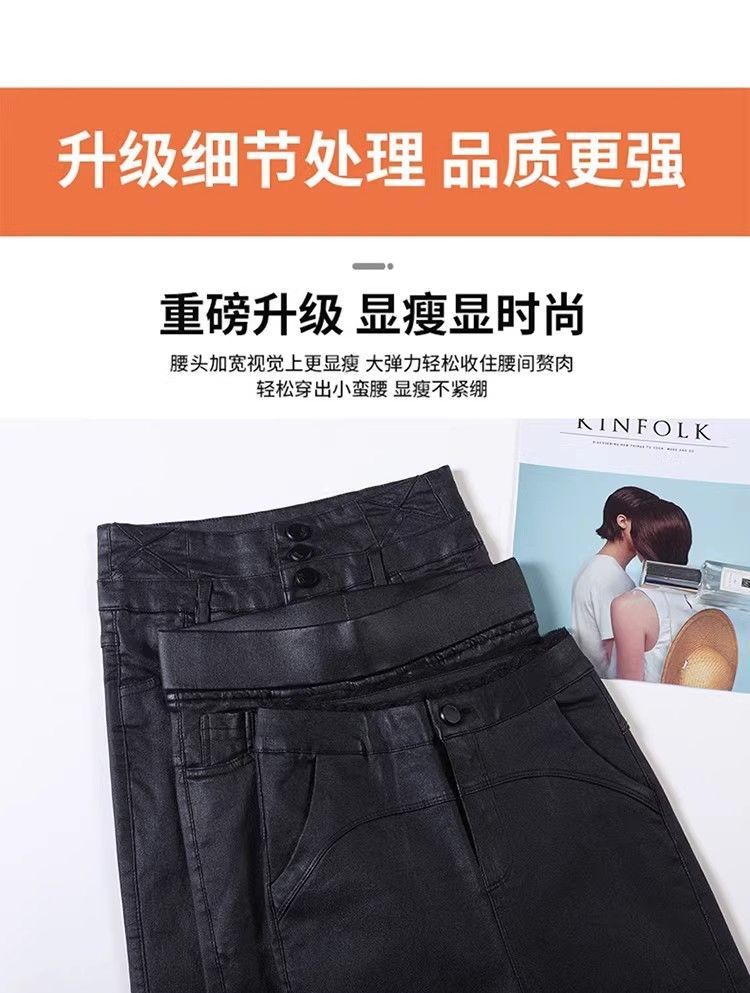 带口袋特厚羊羔绒不裂皮踩脚PU皮裤女外穿加绒加厚高腰紧身打底裤