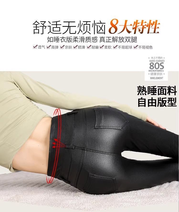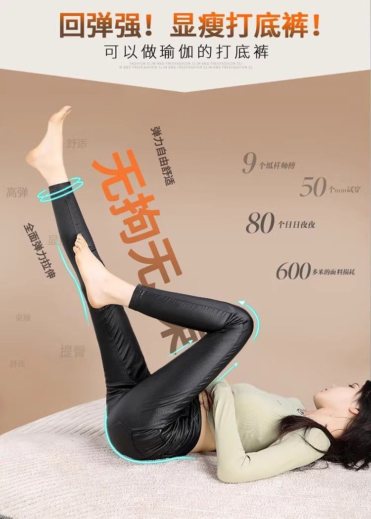 紧身打底裤女2025秋季爆款弹力皮裤高腰长裤显瘦黑色哑光小脚裤子