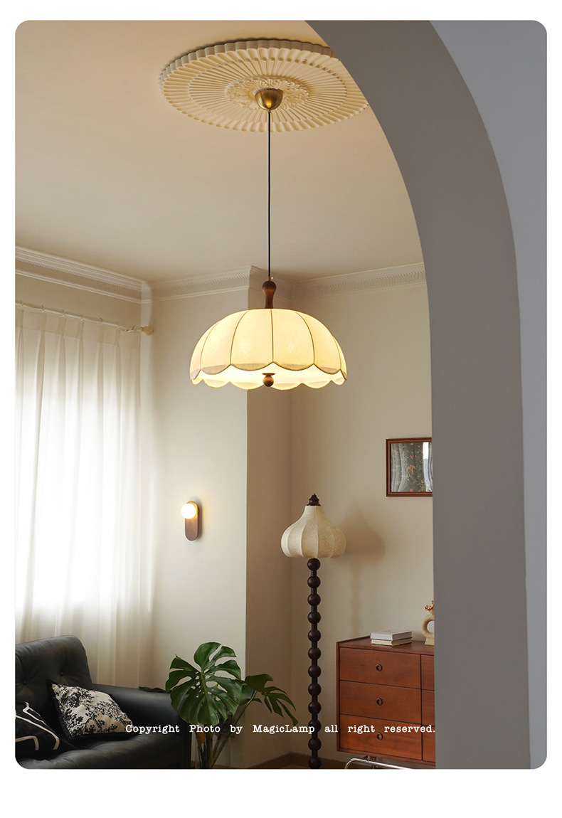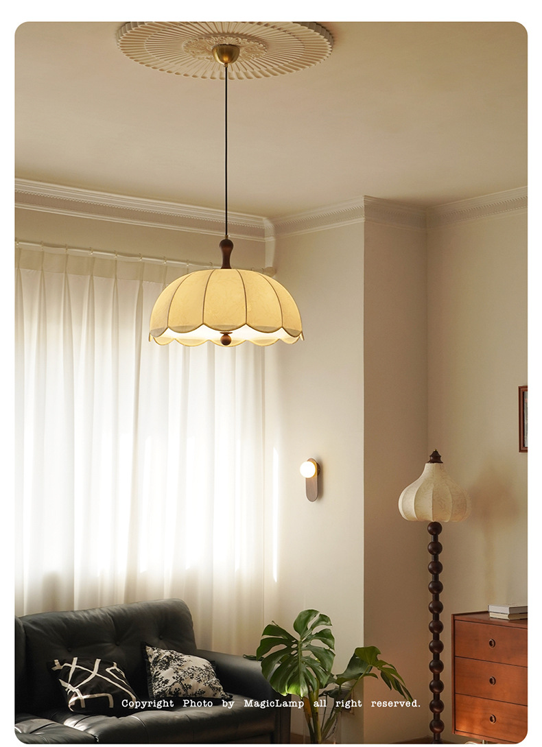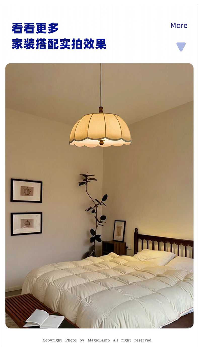 法式中古风客厅蚕丝吊灯复古卧室灯原木风餐厅高级感房间书房灯具