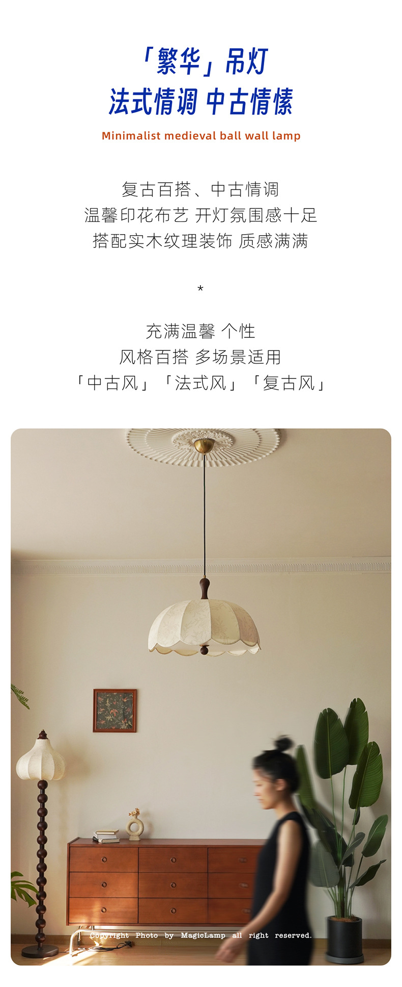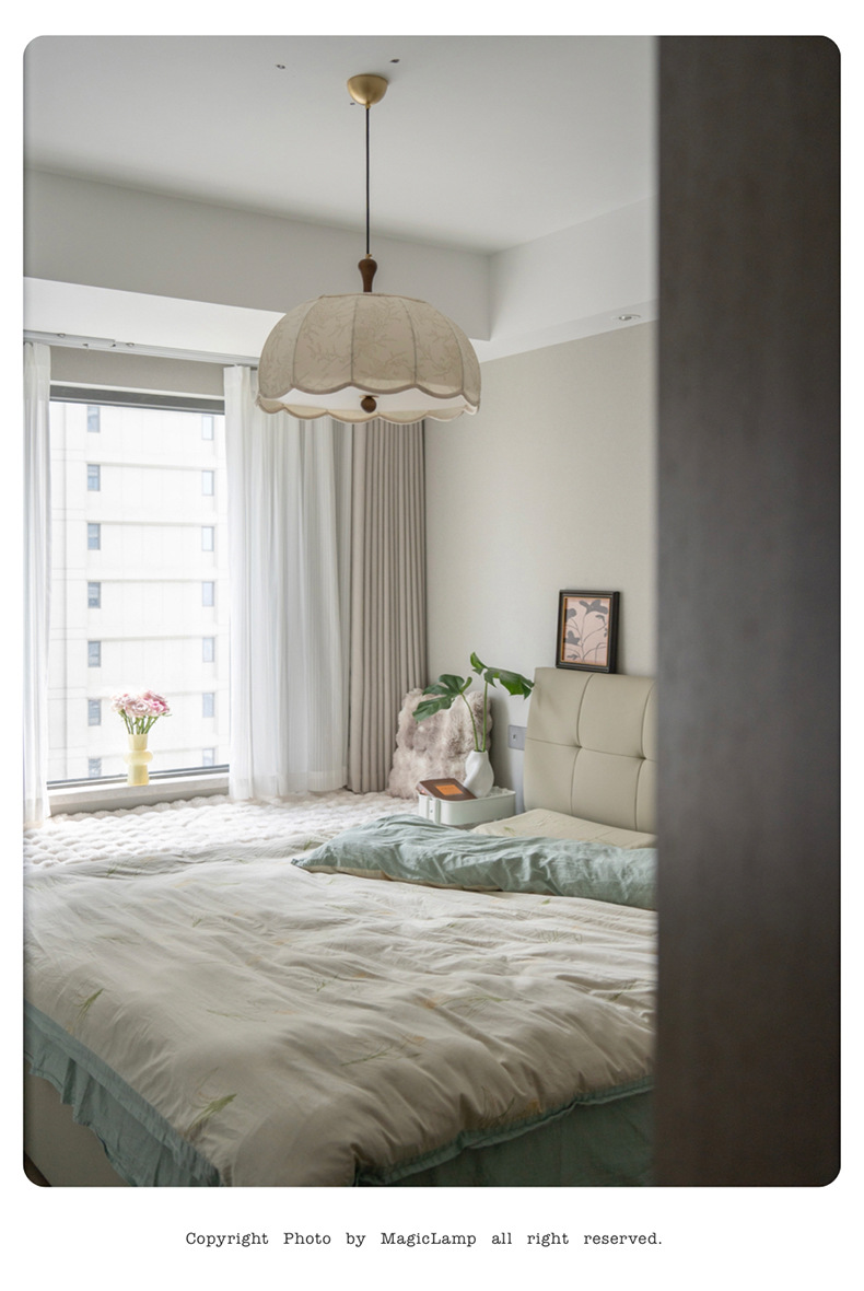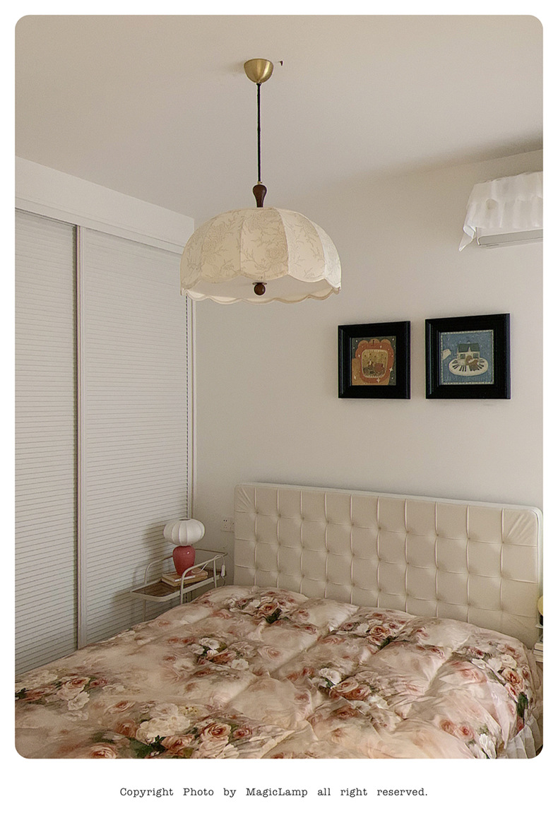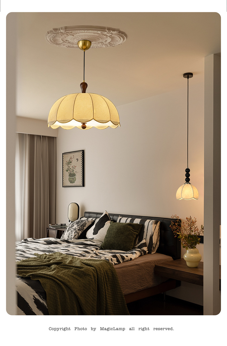 法式卧室吊灯奶油风印花布艺餐厅灯中古诧寂风日式原木风书房灯