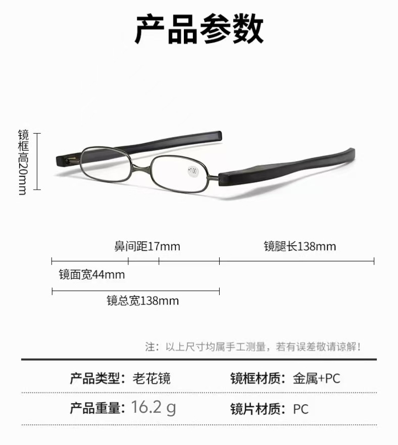 折叠便携老花镜360度旋转便携式轻巧老花眼中老年阅读高清眼镜