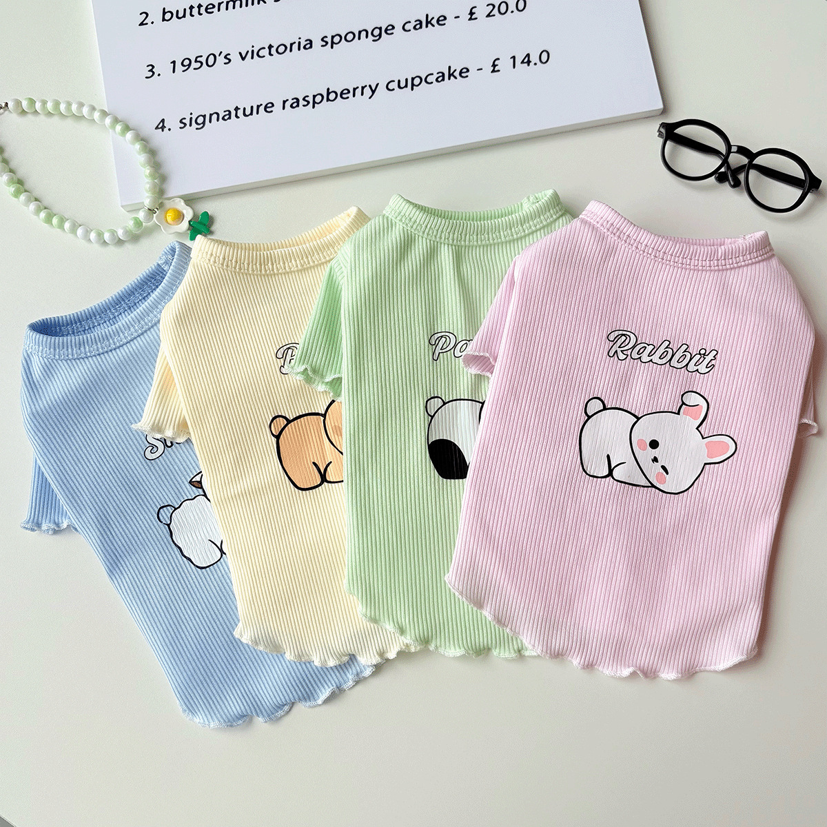 春夏ins薄いかわいい動物プリントペットのテディは熊の犬の服より小さい夏のtシャツの底の服です。