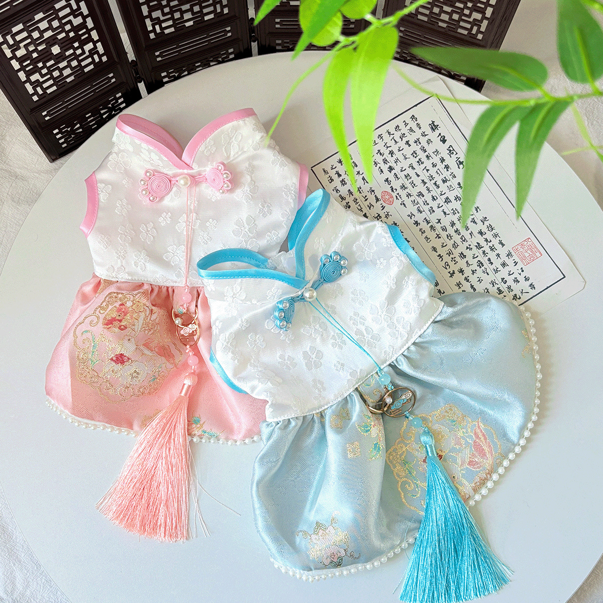 狗狗衣服蝴蝶流苏唐装连衣裙猫咪衣服国风中小型犬适用新中式服装