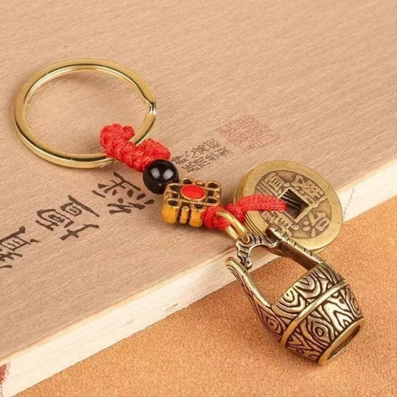 水桶钥匙扣五帝钱防黄铜挂件创意合金饰品聚宝盆装饰挂饰