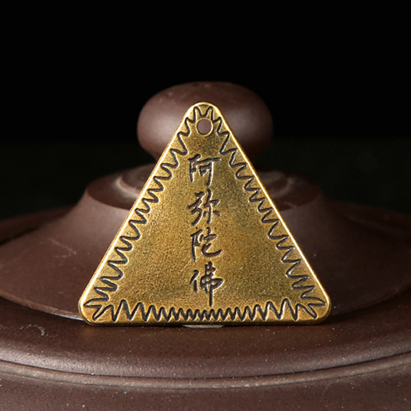 真鍮の三角符平安キーホルダーペンダント阿弥陀仏平安ペンダント小銅器男女カップルプレゼント