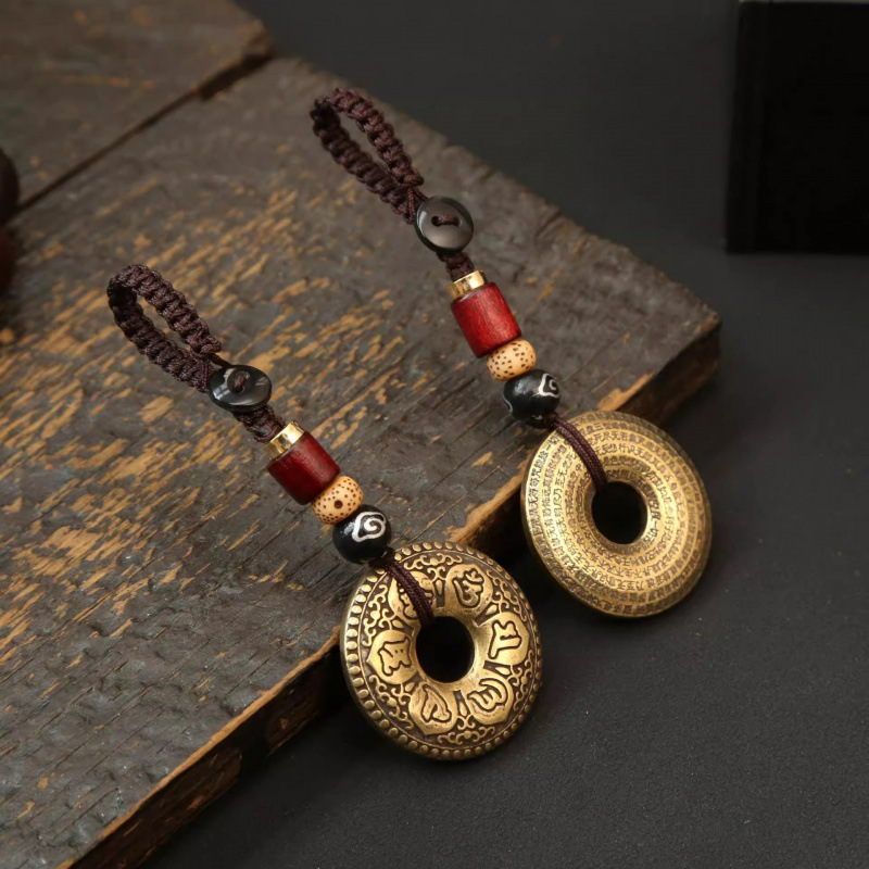 金属平安扣钥匙扣吊坠合金转运简约配饰中式民族风包挂配件挂件牌