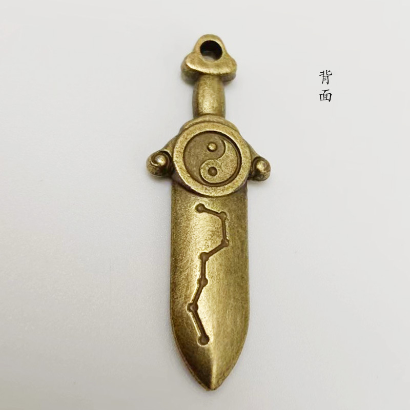 七星剑钥匙扣配件批合金七星剑挂件仿黄铜做旧太极八卦剑吊坠创意