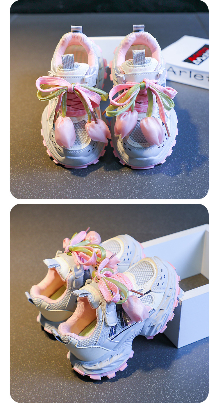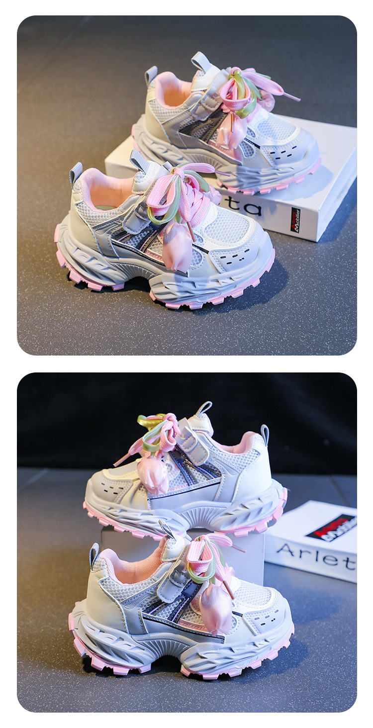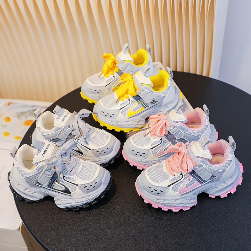 2025秋季开学季儿童新款运动鞋女童网面软底透气跑步鞋老爹鞋潮流