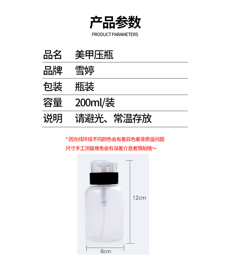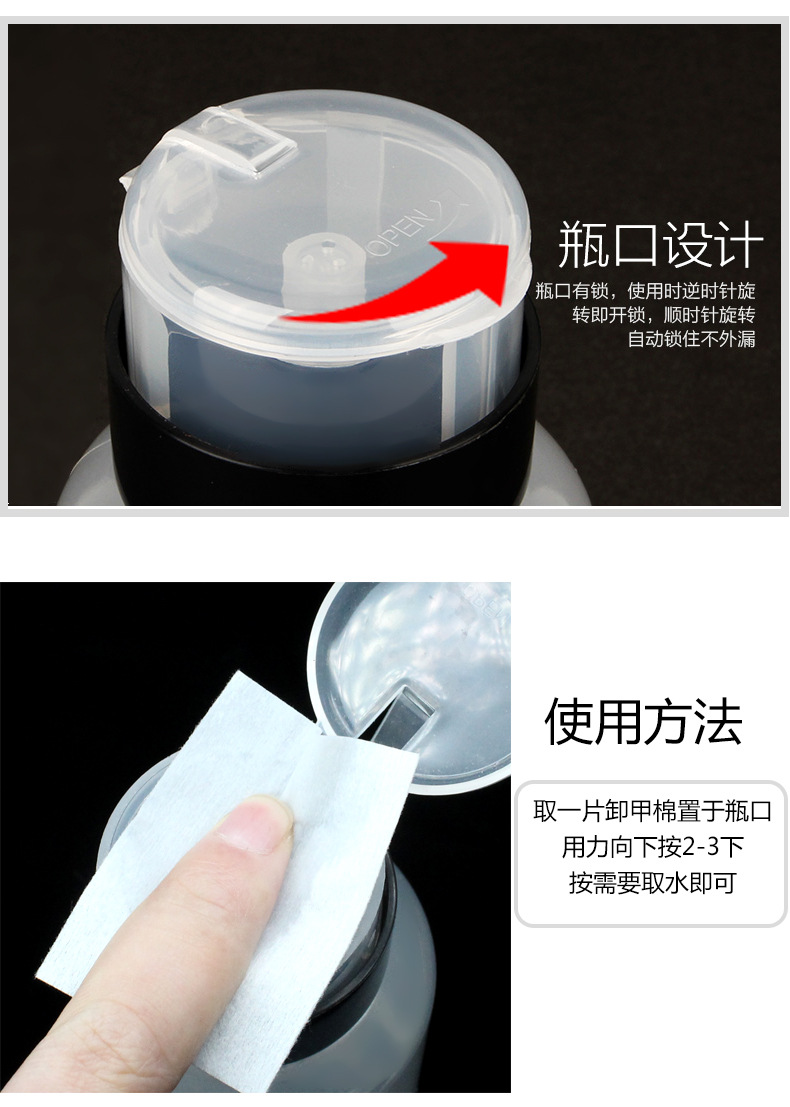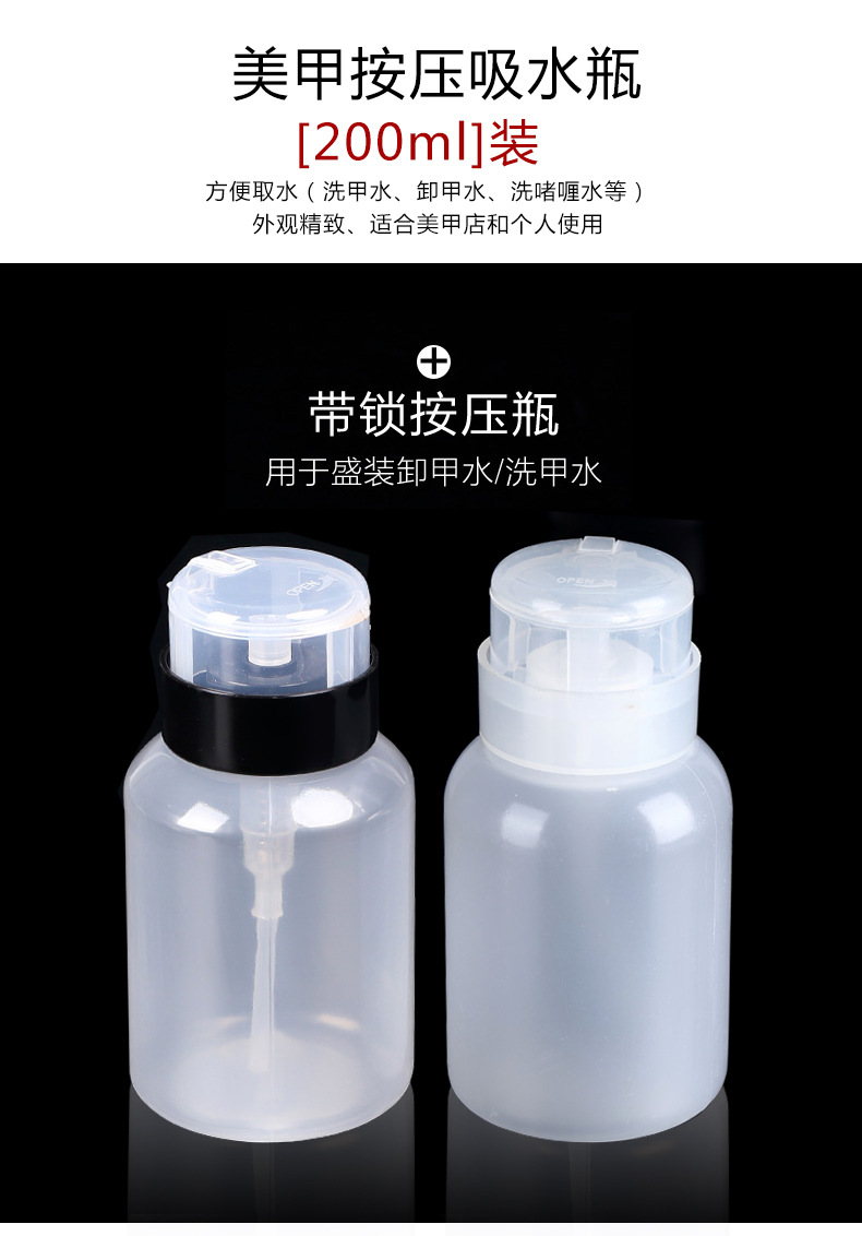 ネイルアート用品押え空き瓶ロック付き瓶ネイルアート吸瓶黒蓋ロック付き空き瓶200ml卸売り