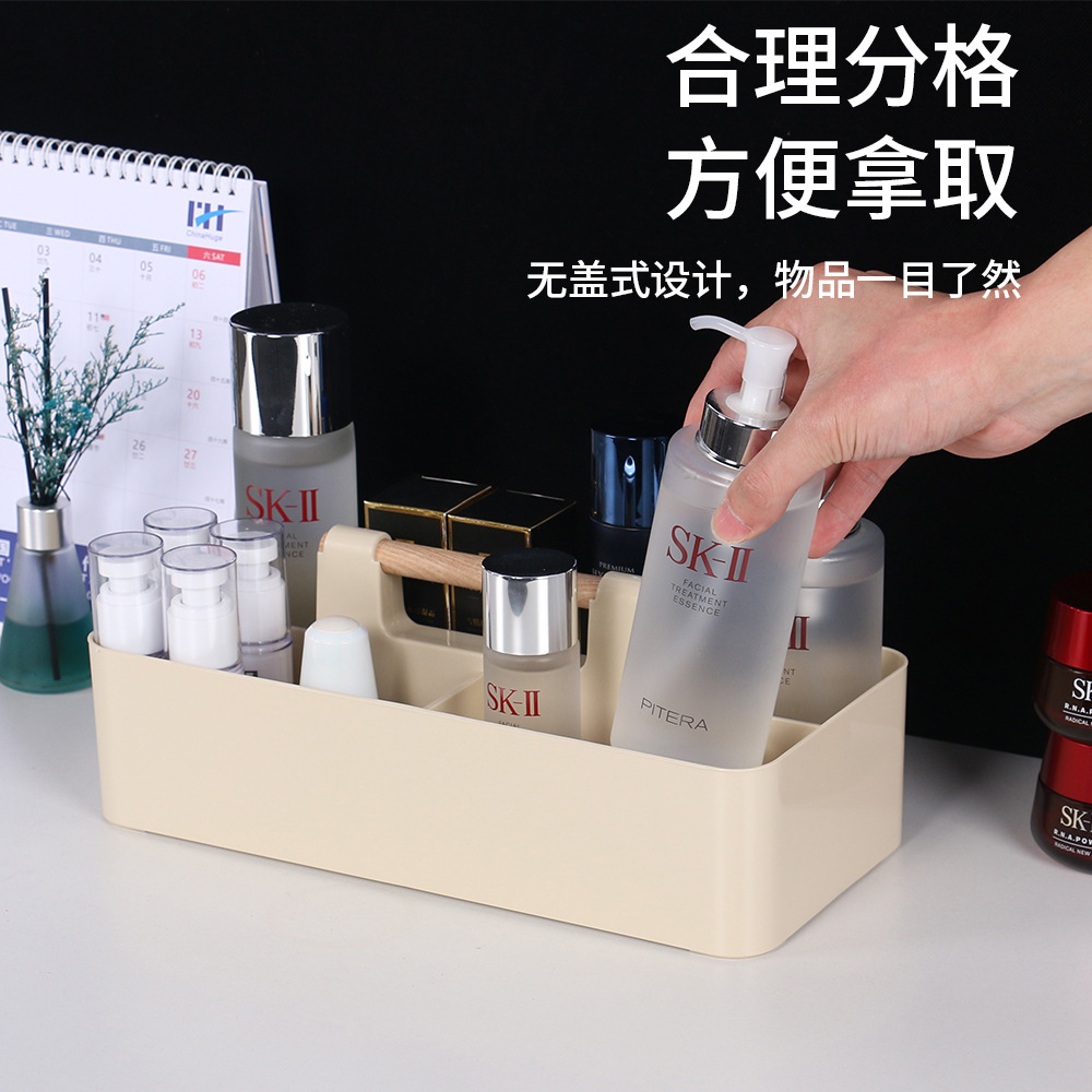 デスクトップ木柄収納ボックス化粧品収納バスケット浴室整理プラスチック収納ボックス多機能デスクトップ収納ボックス