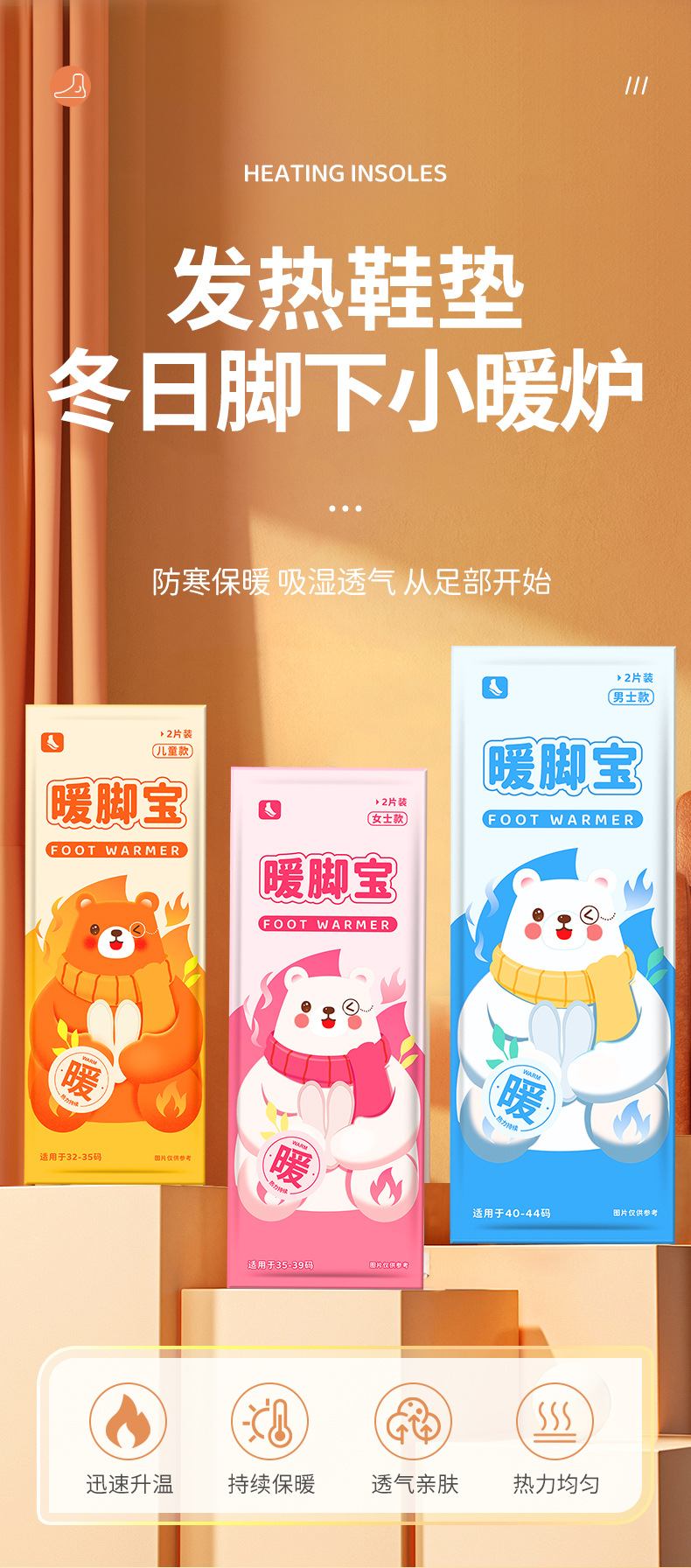 新款暖足鞋垫男女儿童可行走自热暖鞋垫发热暖脚宝加热鞋垫暖足贴