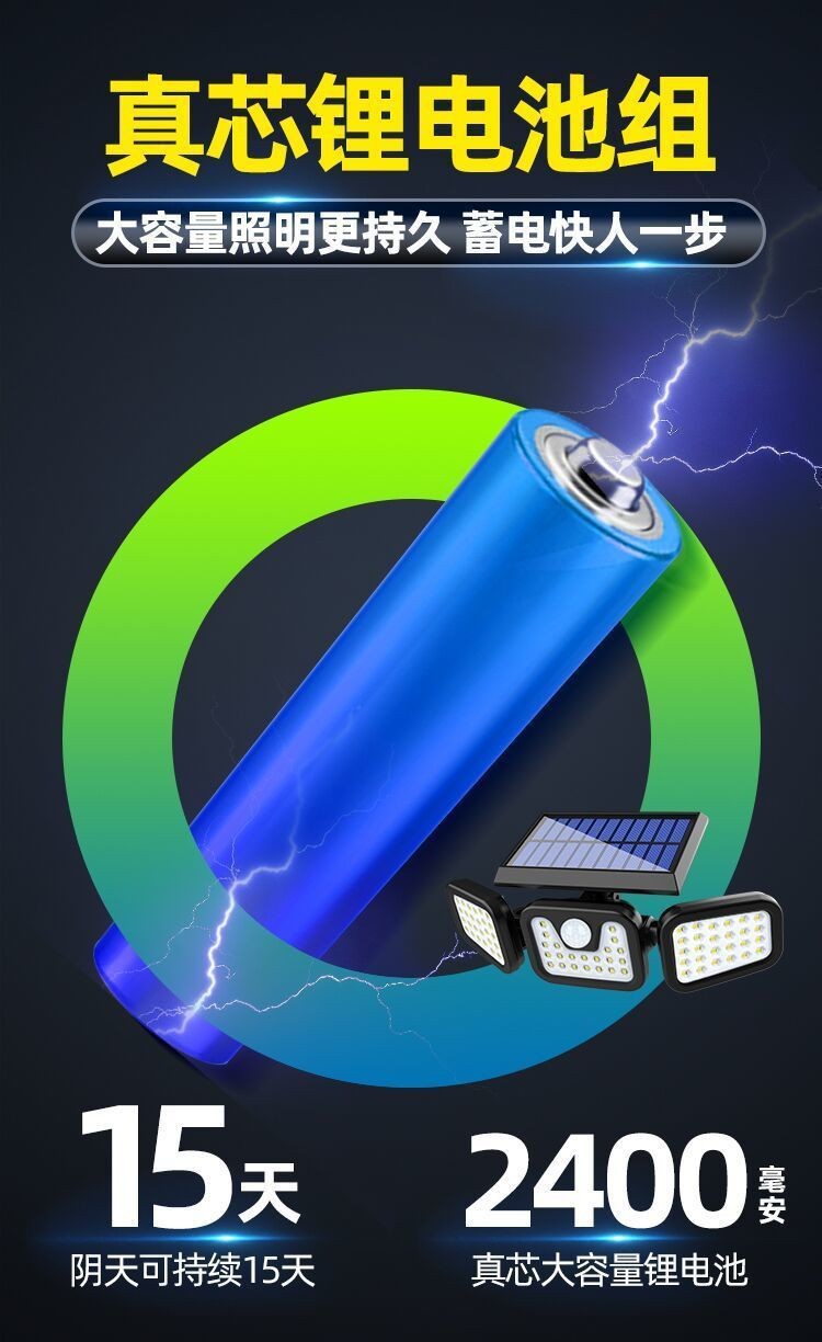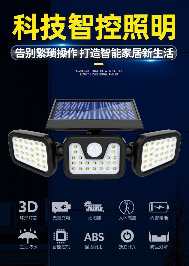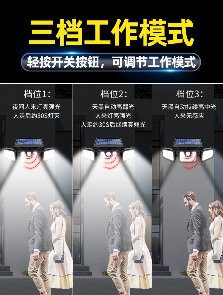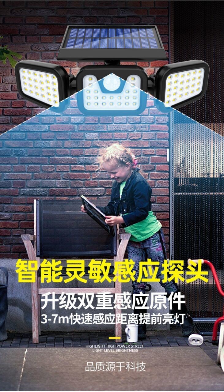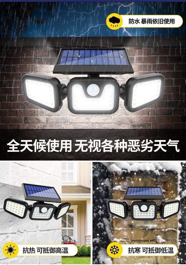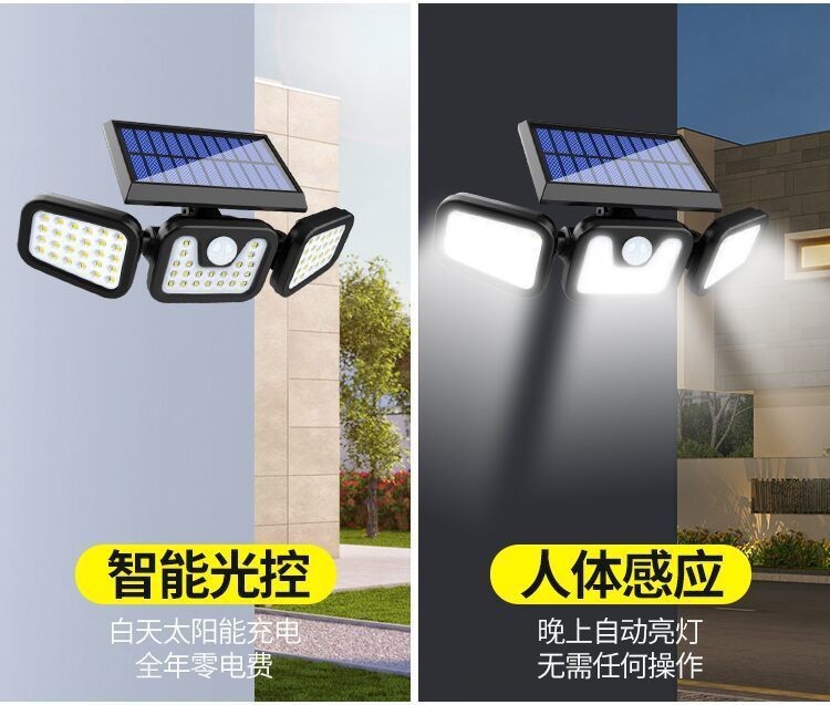 太阳能户外照明灯庭院人体感应三头壁灯超亮大功率智能感应路灯