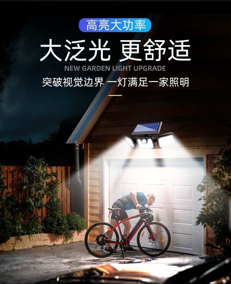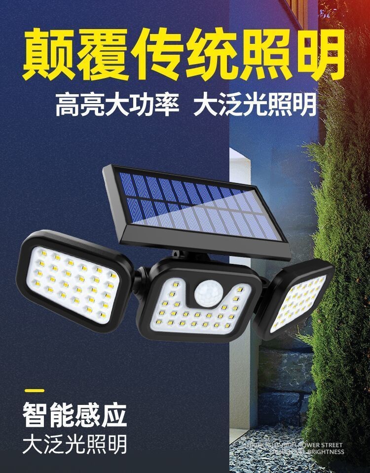 新しい 3 ヘッド LED ソーラーウォールランプクロスボーダーソーラーガーデンライト屋外人体誘導ランプ超高輝度