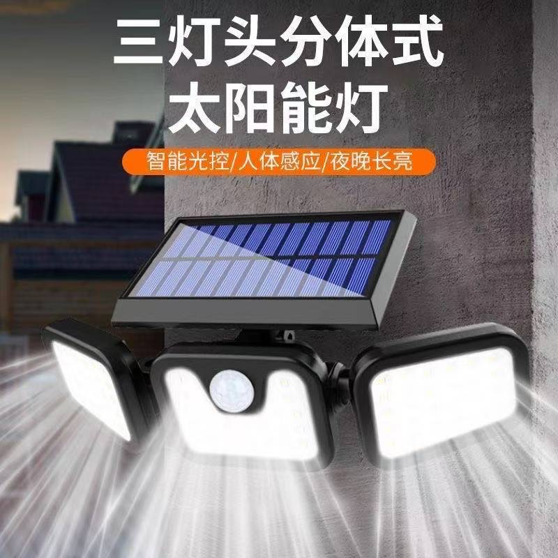 ソーラー三頭分割壁灯 人感センサーLED屋外庭園灯 道路照明一体型街路灯