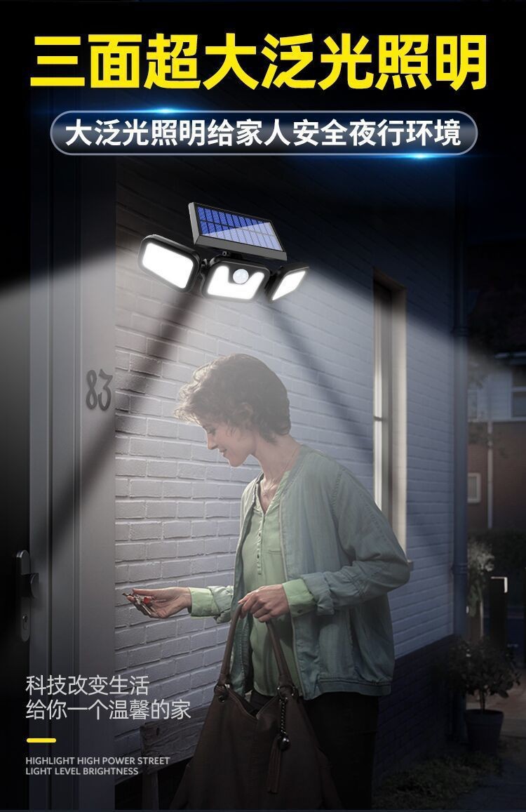 太阳能三面壁灯户外庭院灯家用led人体感应花园灯路灯防水充电灯