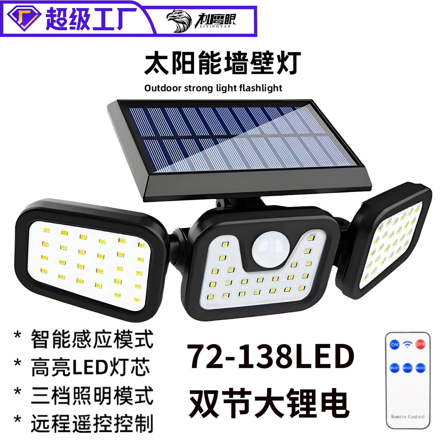 太阳能三头分体壁灯家用户外墙壁路灯防水人体感应庭院照明灯遥控