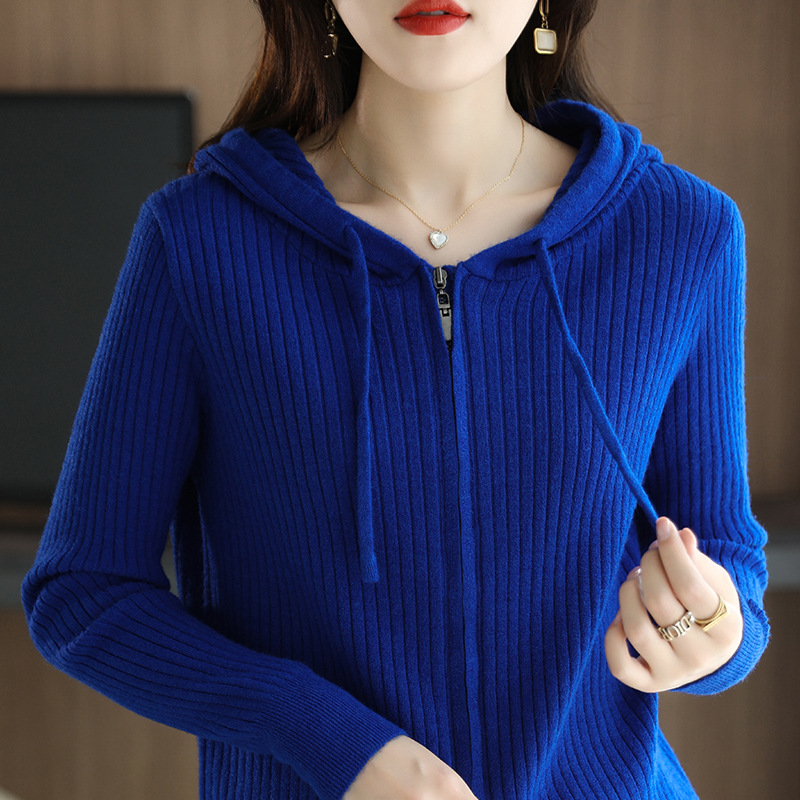 2024秋の新型帽子付きニットカーディガンのジッパー付きパーカー