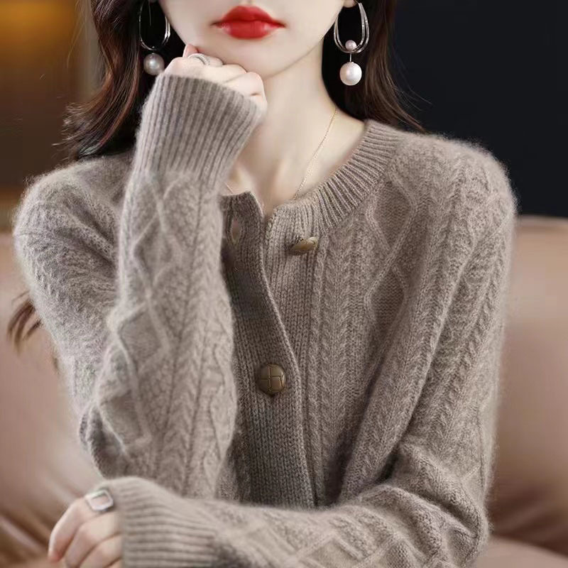 2024秋冬新作韓国版女性丸首長袖ニットカーディガンカシミヤの上着