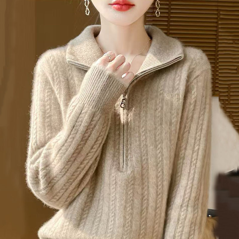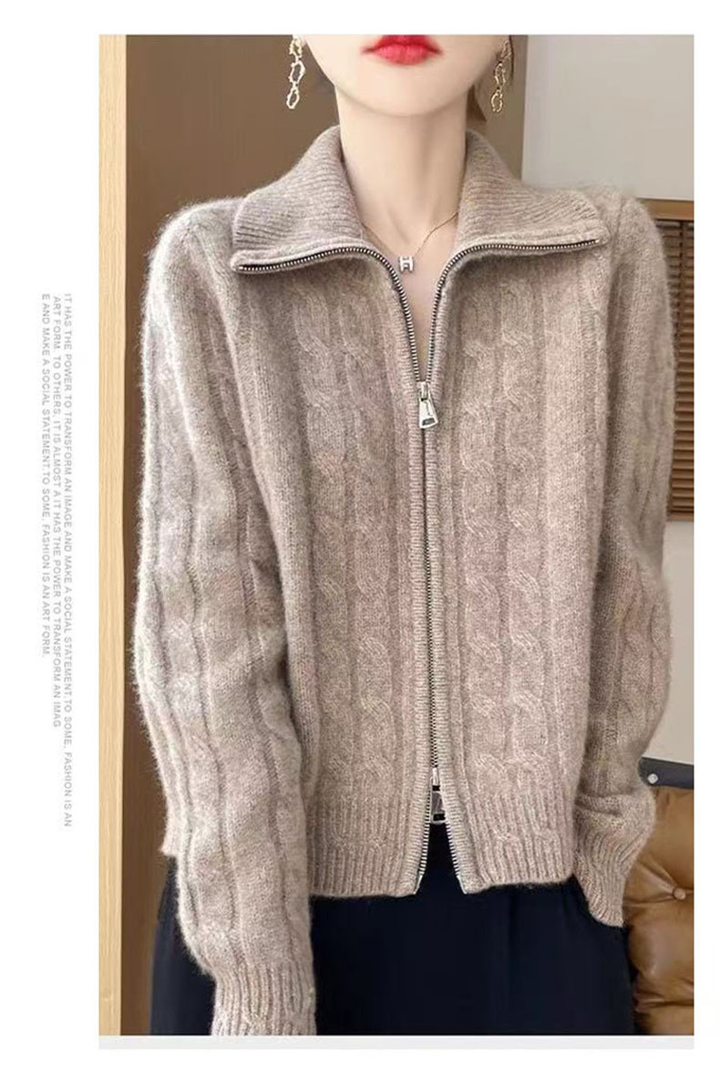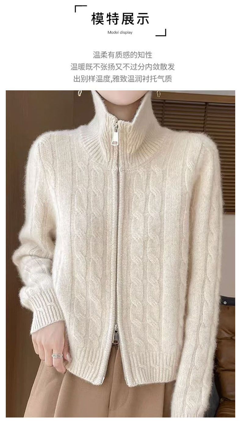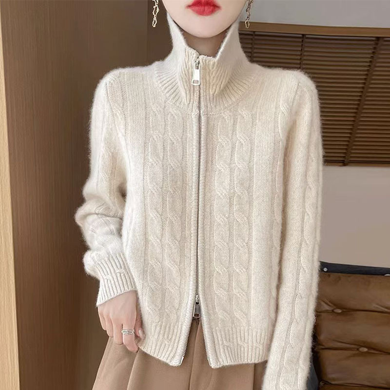 秋冬の新型高襟ウールカーディガン女性麻花ファスナーセーターニットニットニット