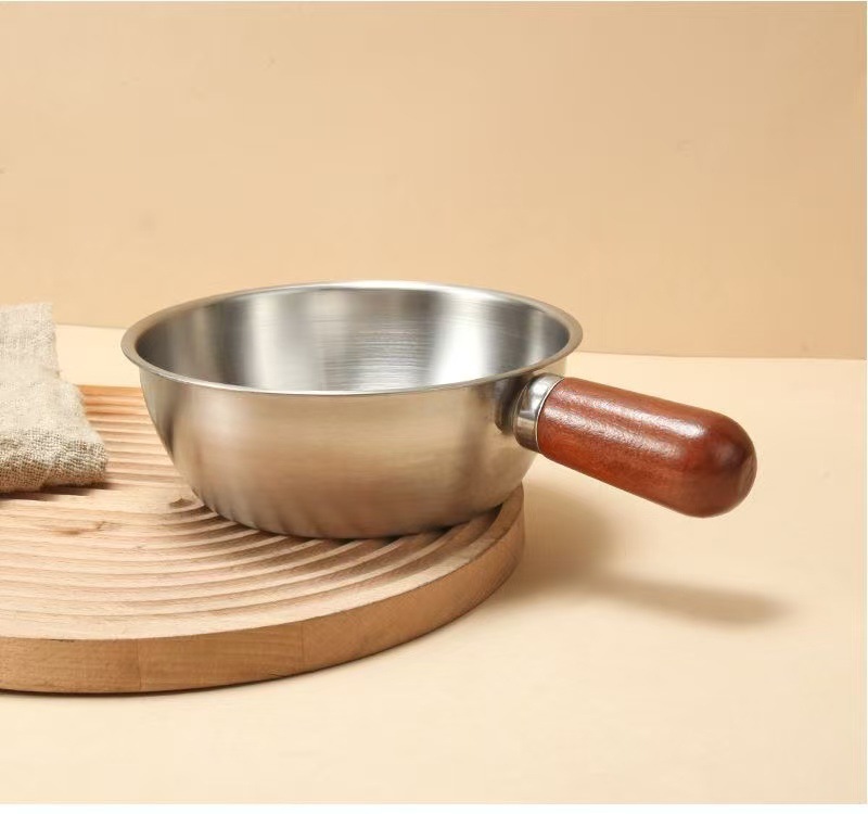 跨境不锈钢小奶锅胡桃木手柄一人食锅泡面锅沙拉料理打蛋碗热油锅
