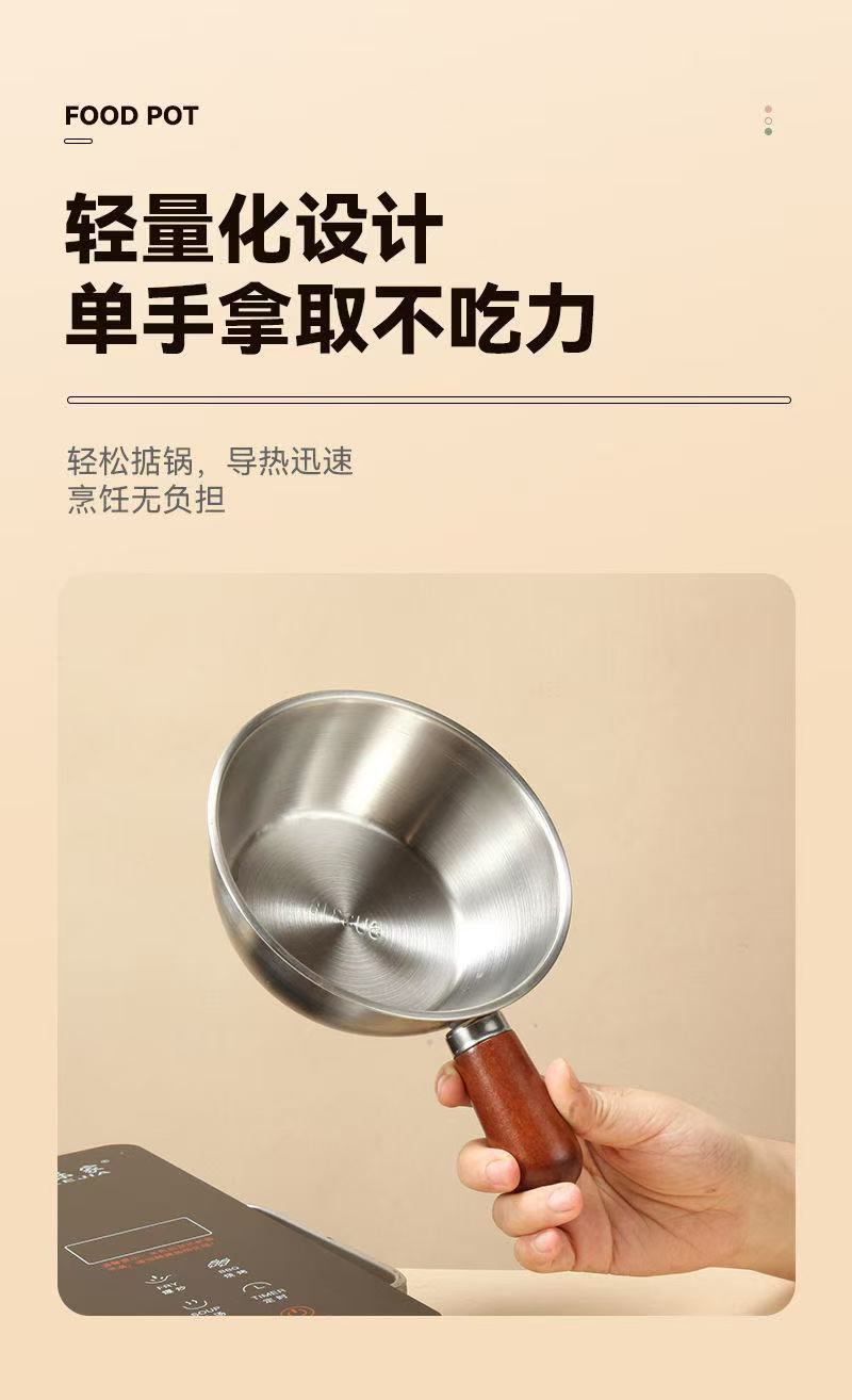 跨境304不锈钢小食锅胡桃木柄日式小吃锅迷你锅牛奶锅辅食锅