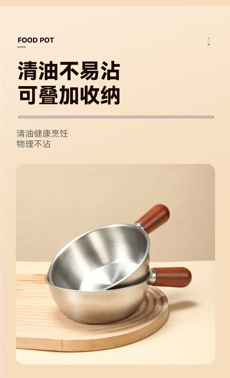304不锈钢辅食小胖锅多功能烹饪酱汁料理碗防烫木柄小碗泡面小锅