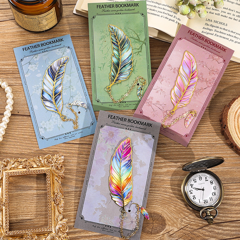 羽毛金属书签 学生阅读书页夹精致礼物送同学标签书扣儿童伴手礼