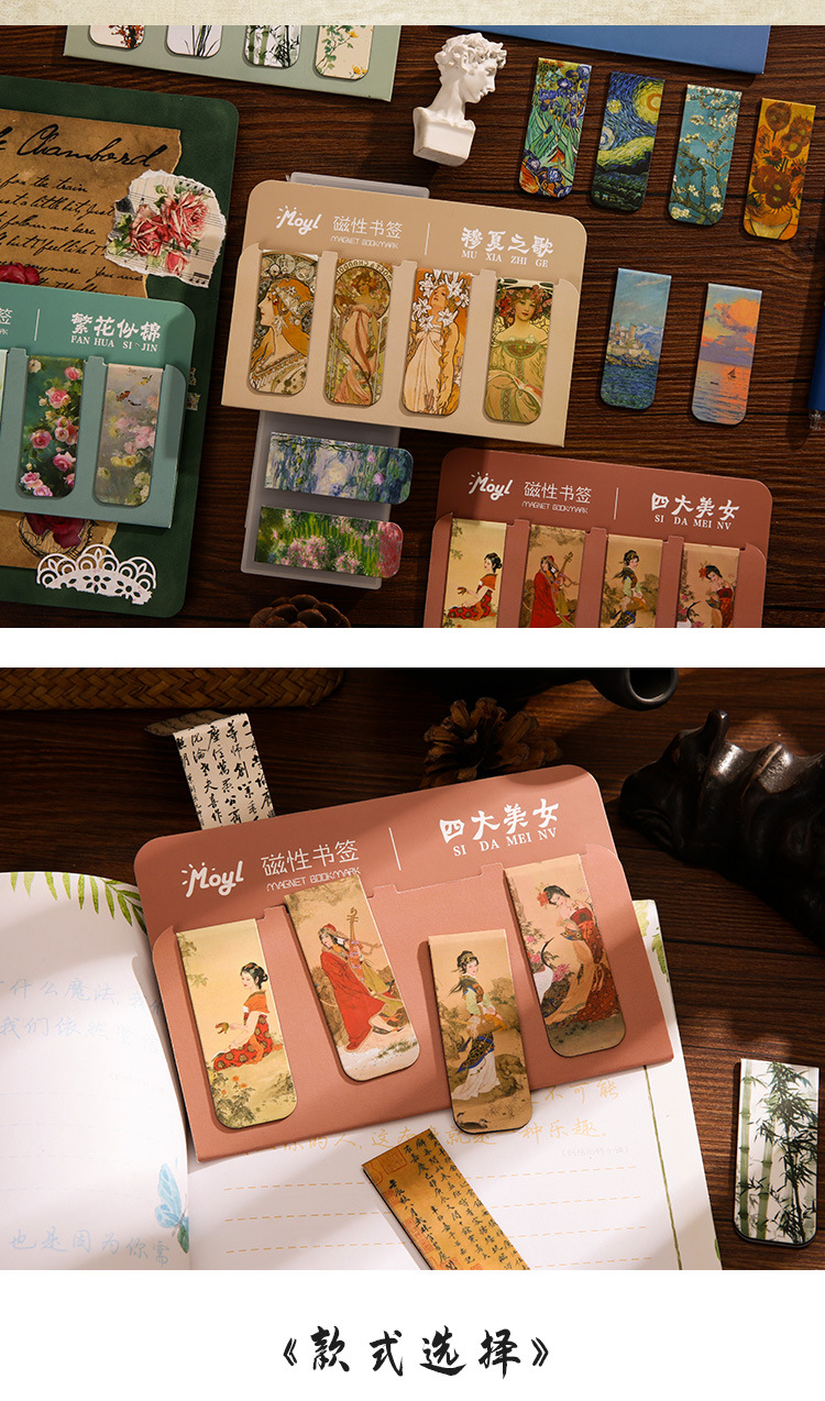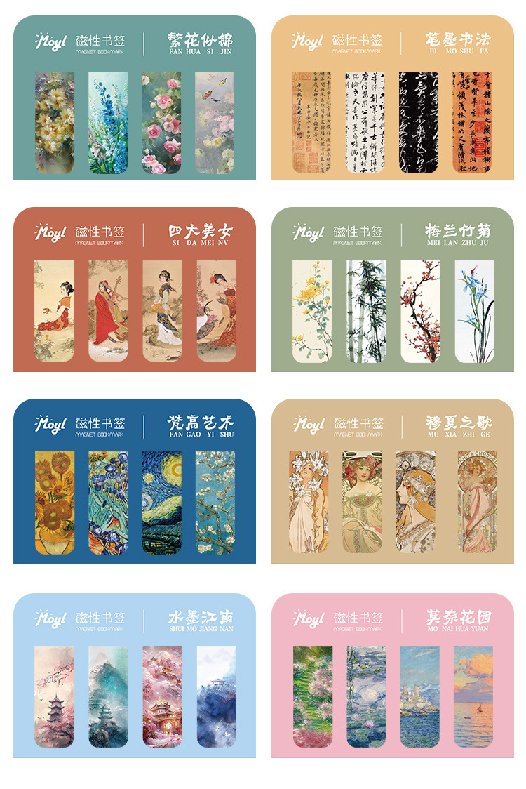 颜色 繁花似锦/1套(4枚入),笔墨书法/1套(4枚入),梵高艺术/1套(4枚入),梅兰竹菊/1套(4枚入),穆夏之歌/1套(4枚入),水墨江南/1套(4枚入),莫奈花园/1套(4枚入),四大美女/1套(4枚入)