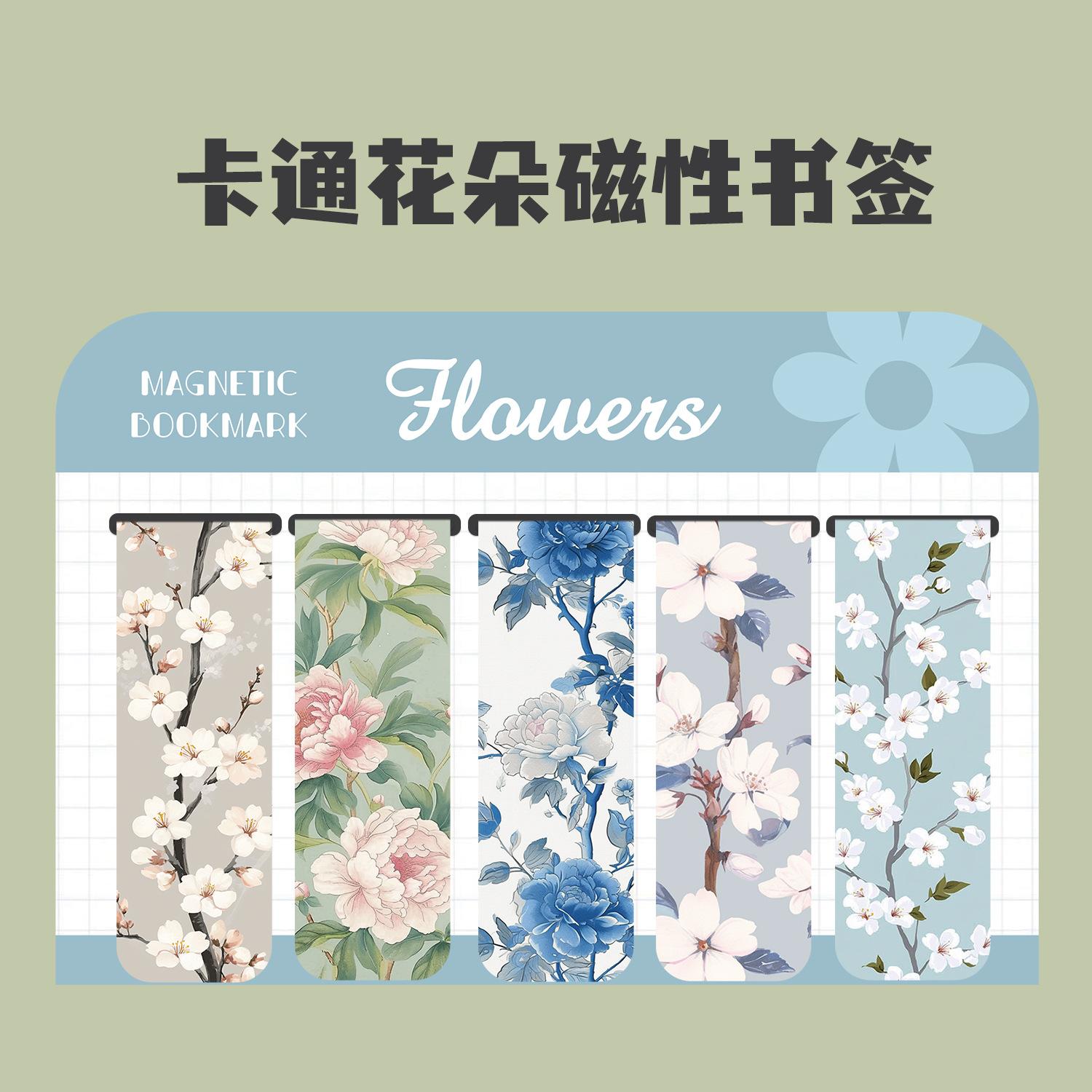 5枚マグネットしおりシリーズ漫画花風景磁気シリーズクロスボーダーしおり創意二つ折り紙製しおり