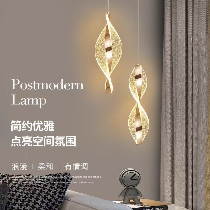 寝室のベッドサイドの小さなシャンデリア、シンプルでモダンで軽い高級感、リビングルームの背景壁、バー、通路、長いライン、北欧のシンプルなシャンデリア