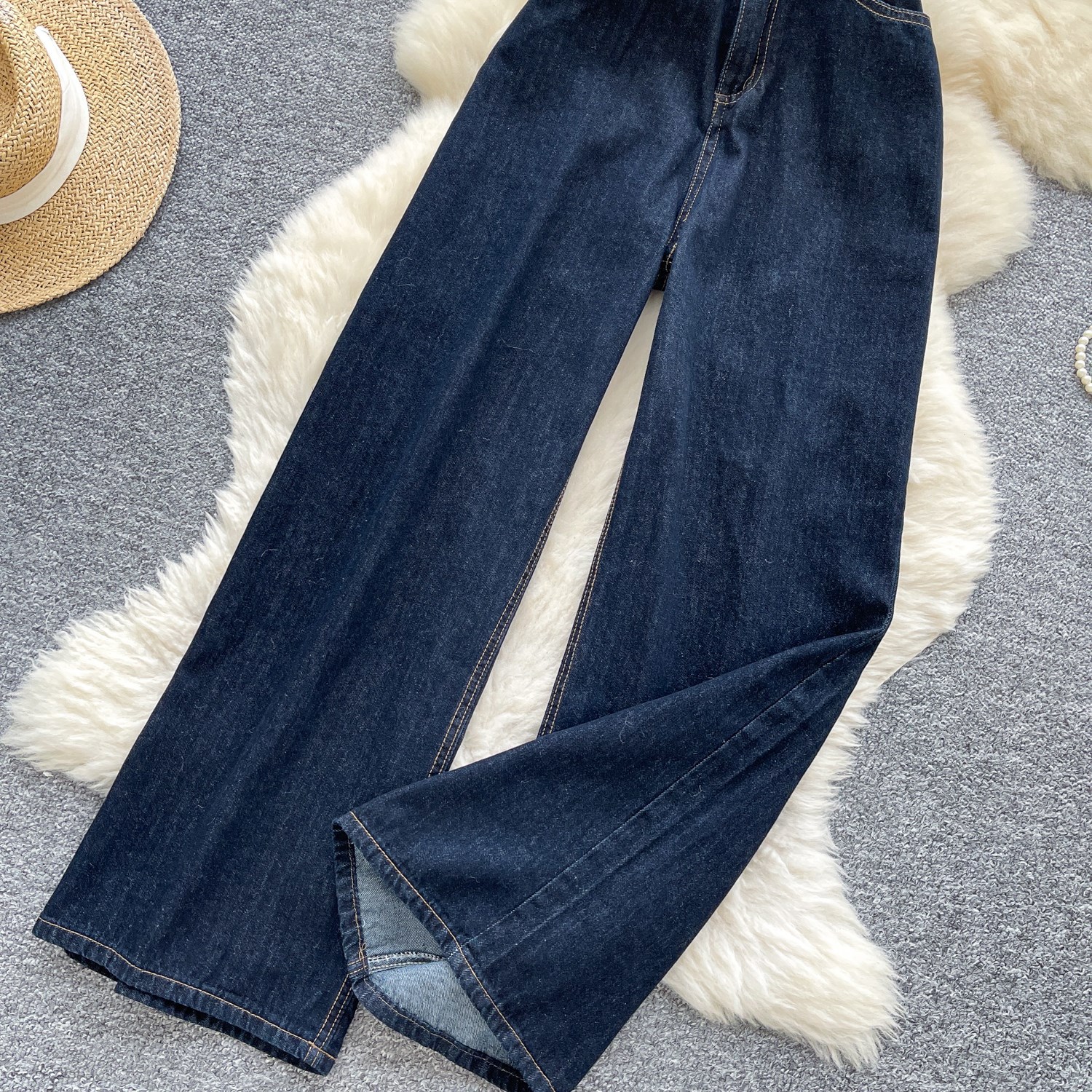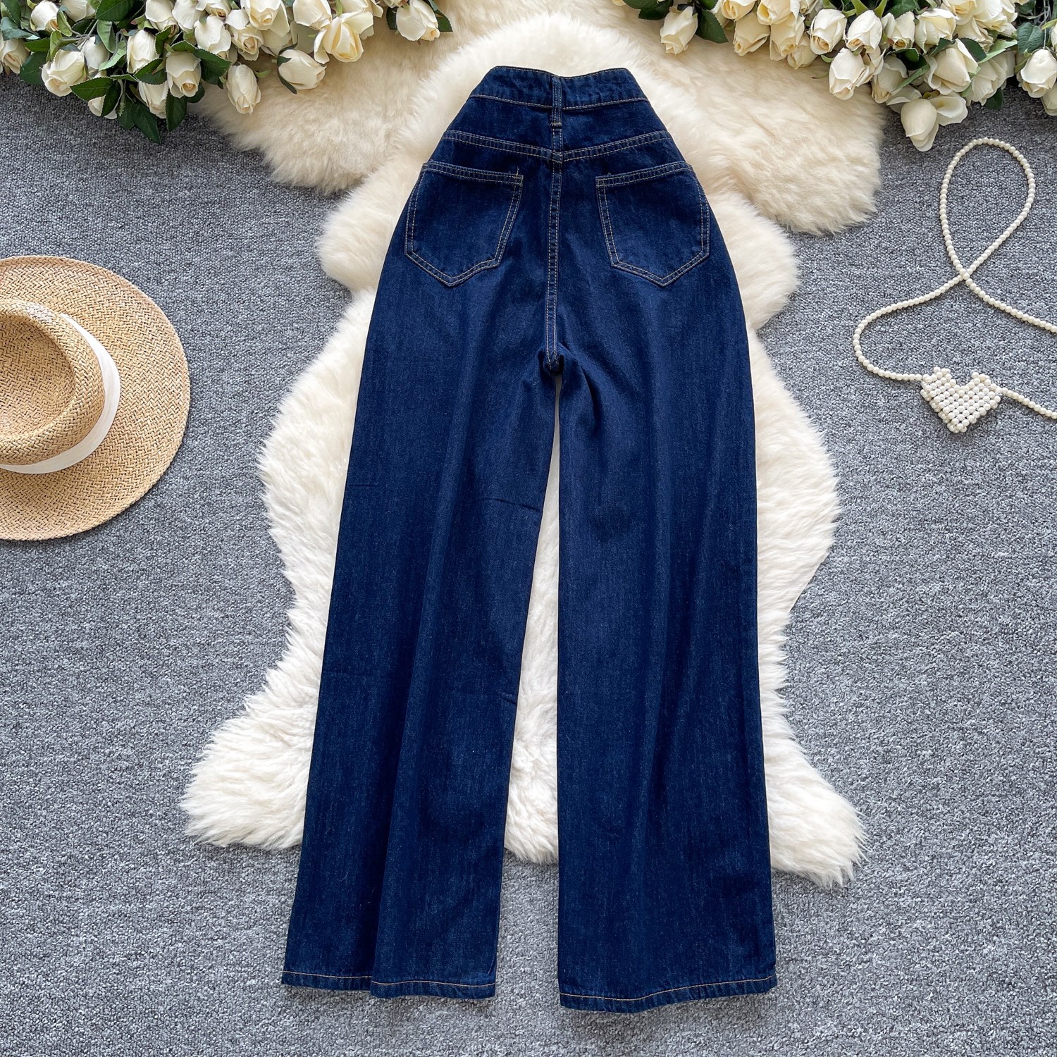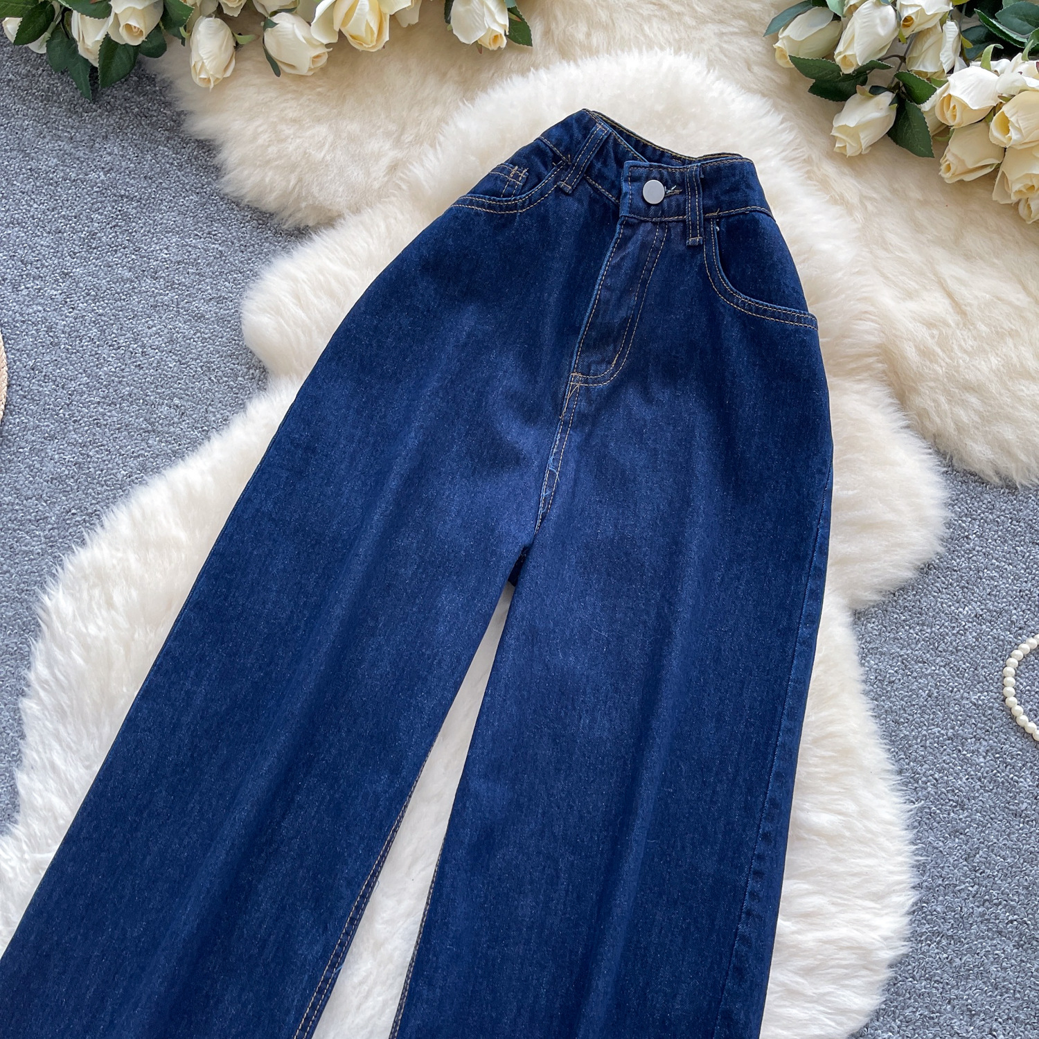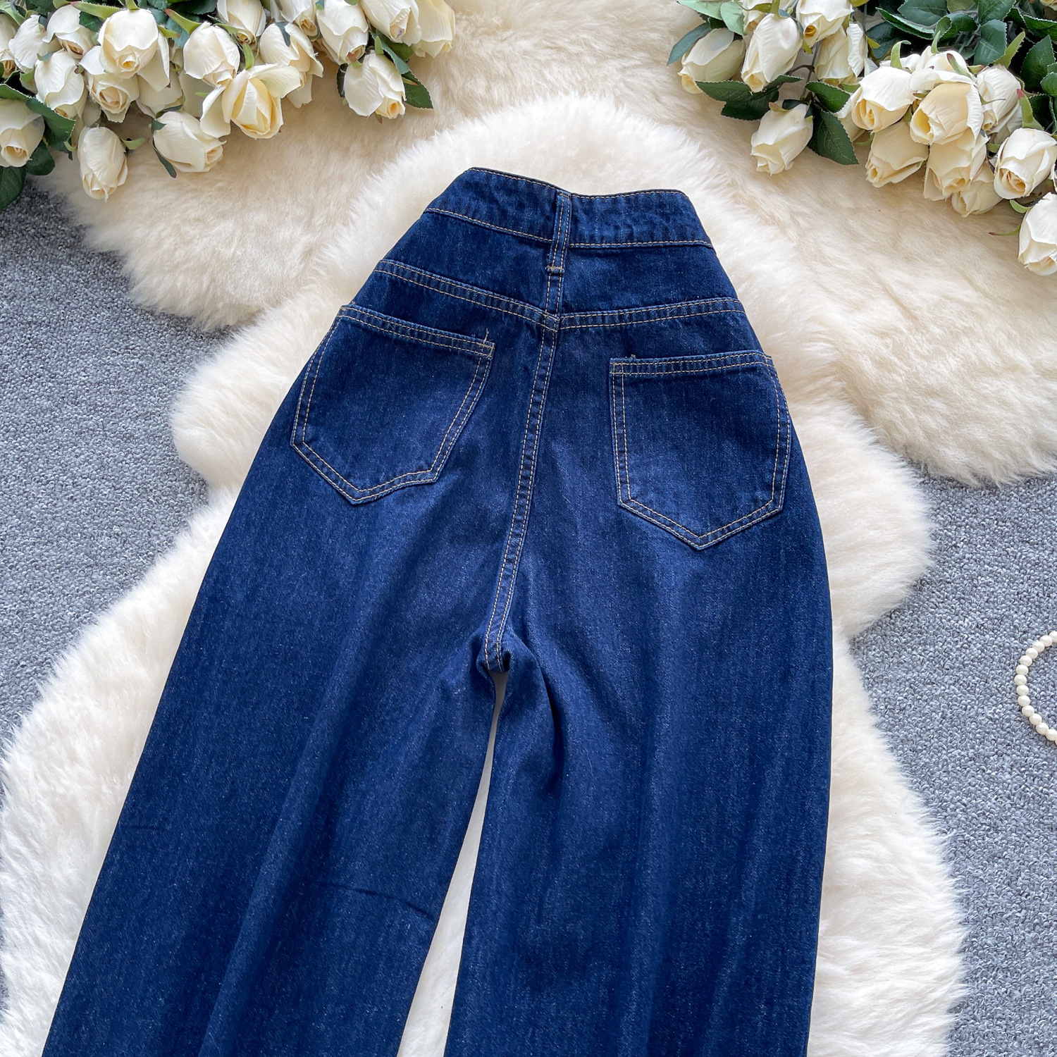 货号 外贸复古辣妹风牛仔裤女秋季高腰显瘦直筒阔腿休闲百搭小众拖地长