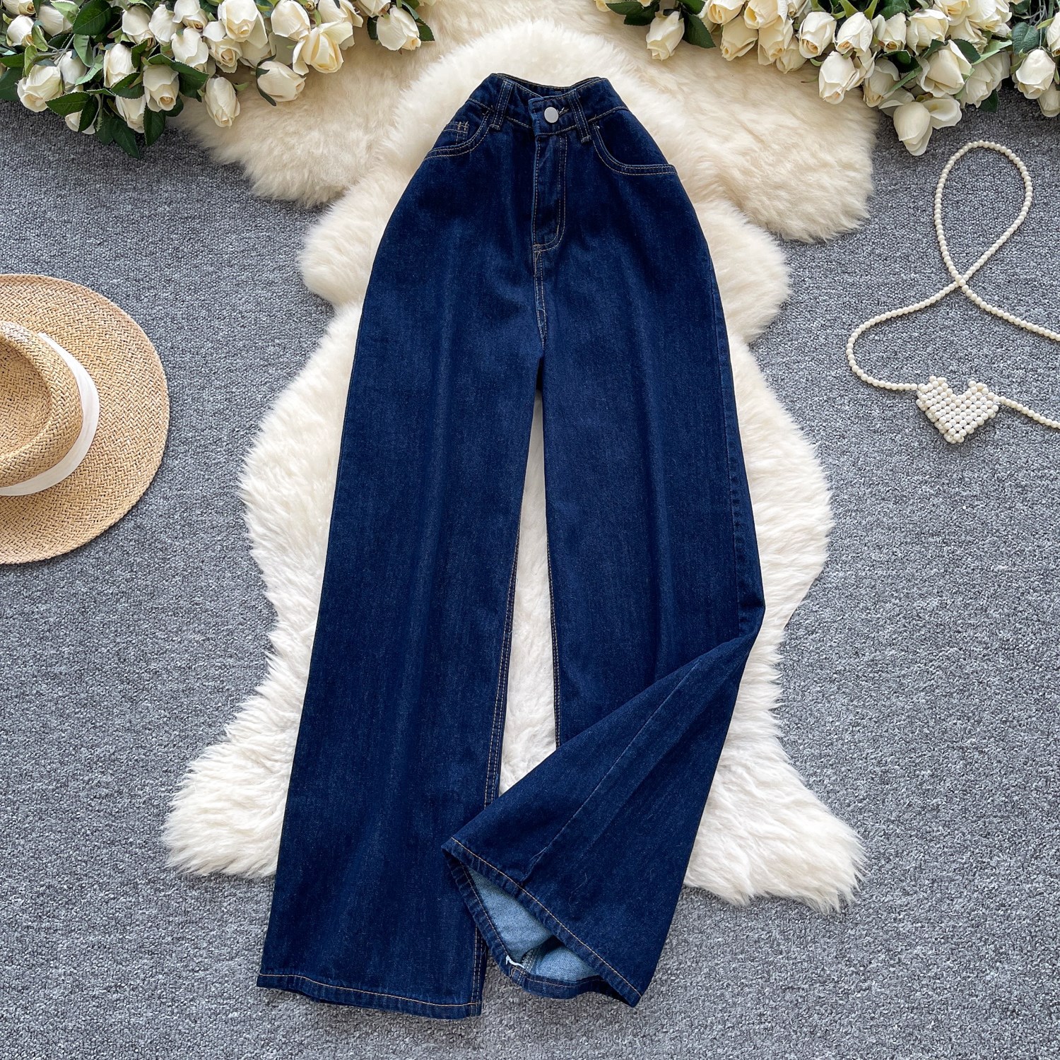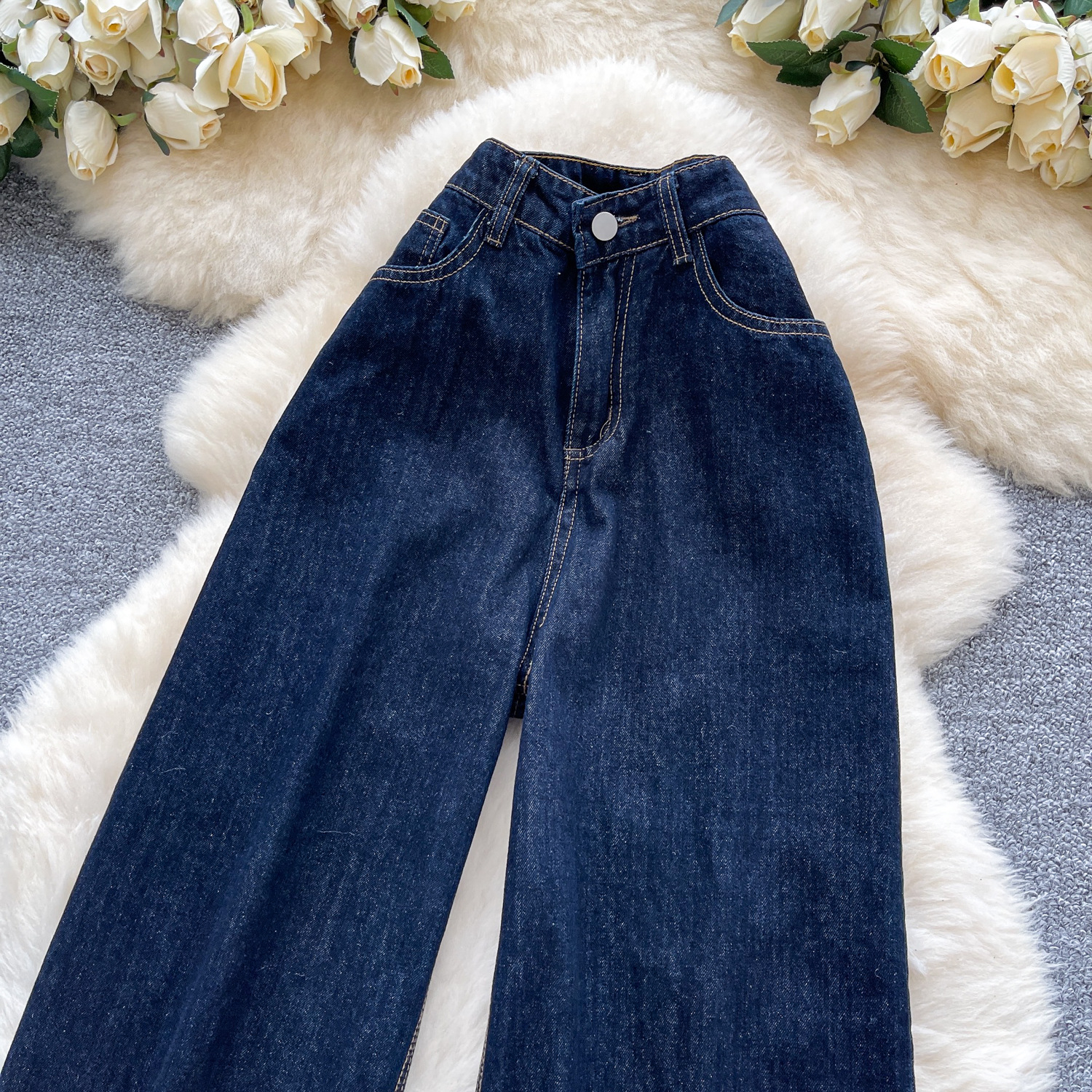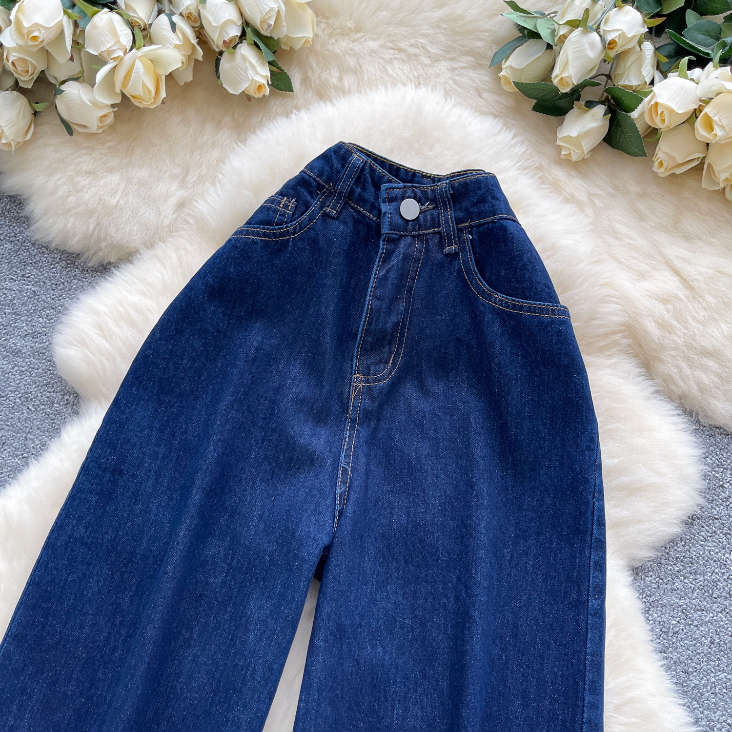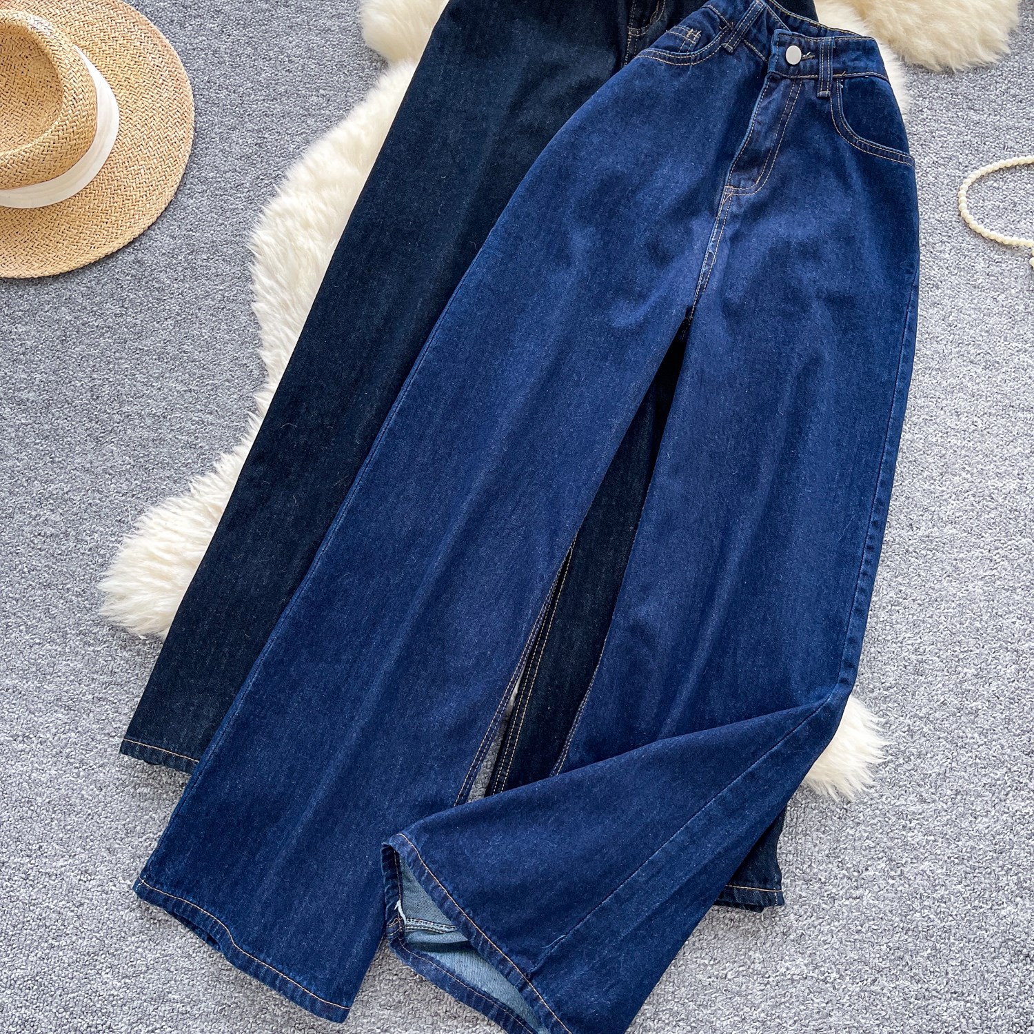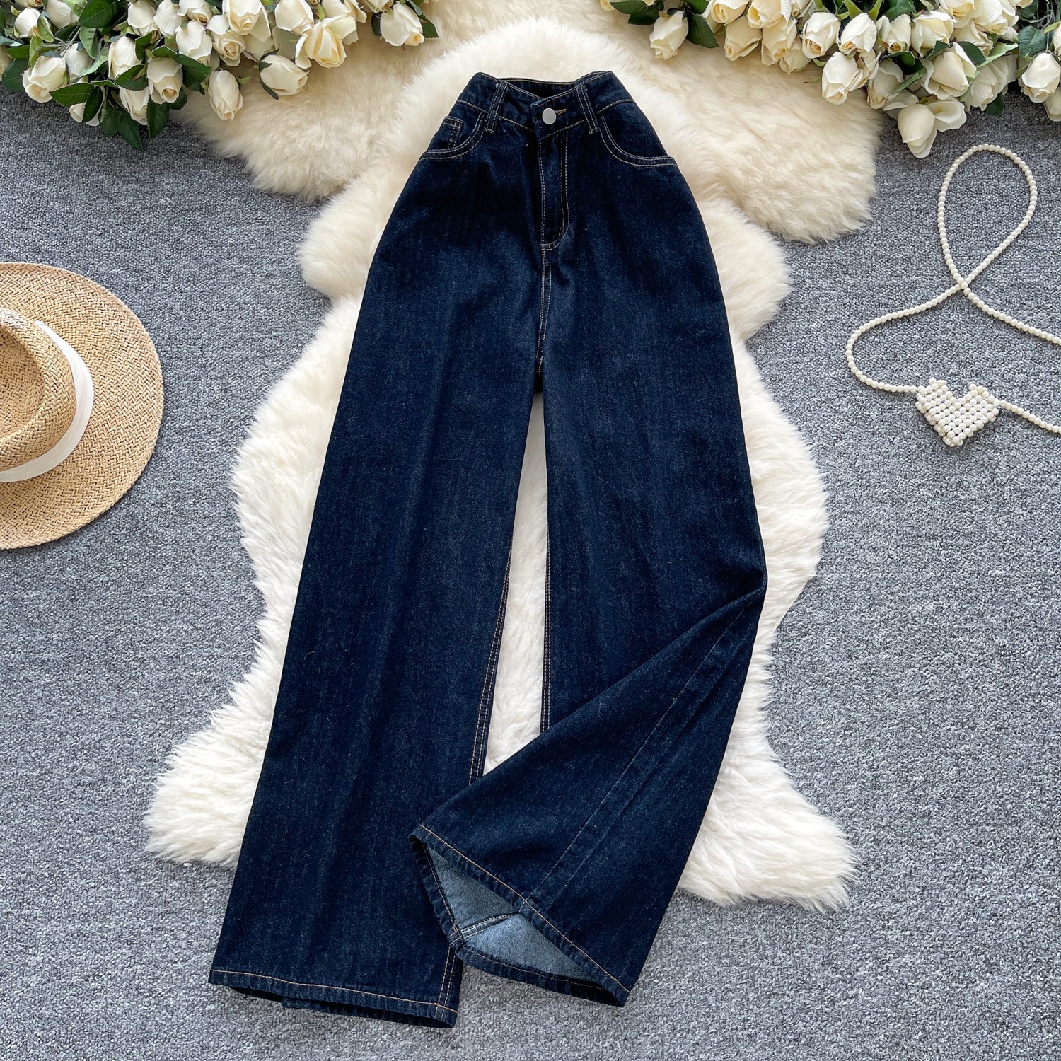 货号 外贸复古辣妹风牛仔裤女秋季高腰显瘦直筒阔腿休闲百搭小众拖地长