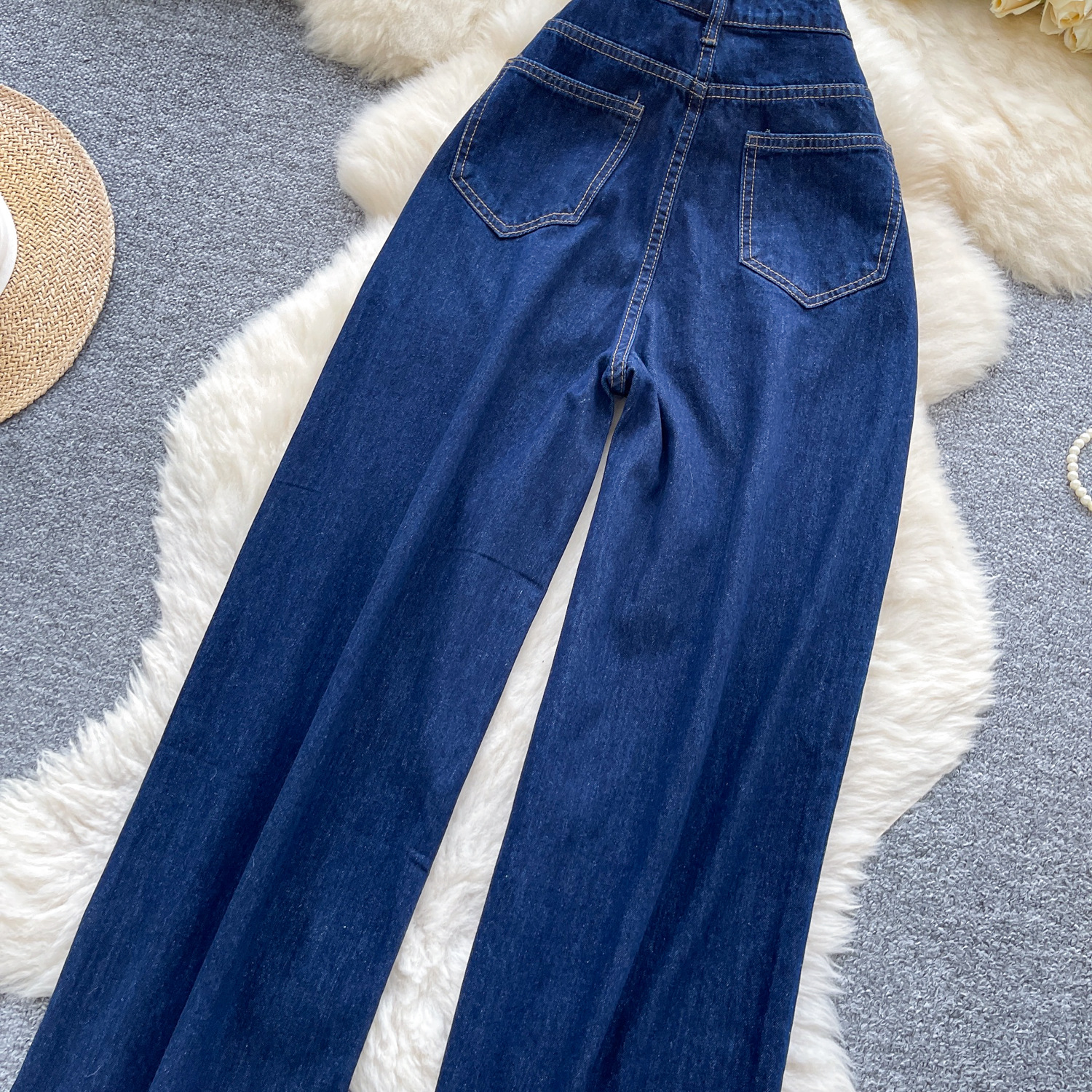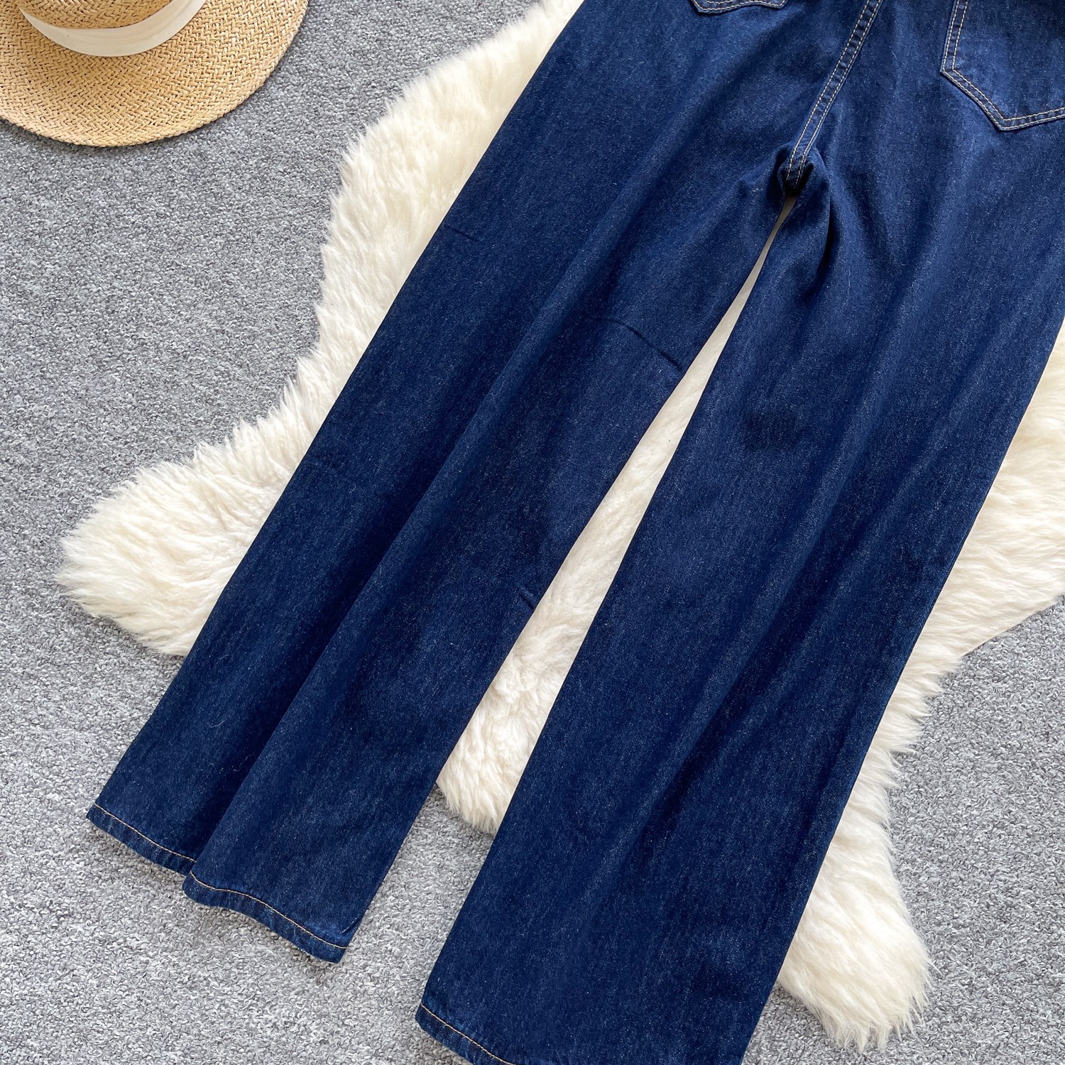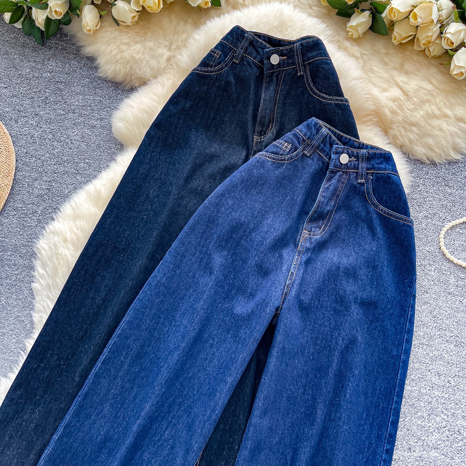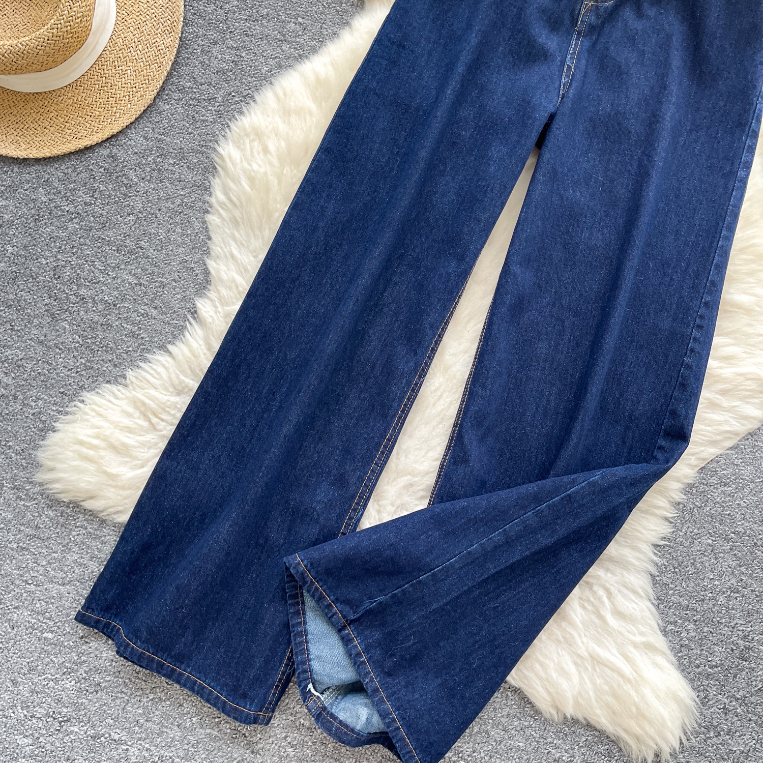 货号 外贸复古辣妹风牛仔裤女秋季高腰显瘦直筒阔腿休闲百搭小众拖地长