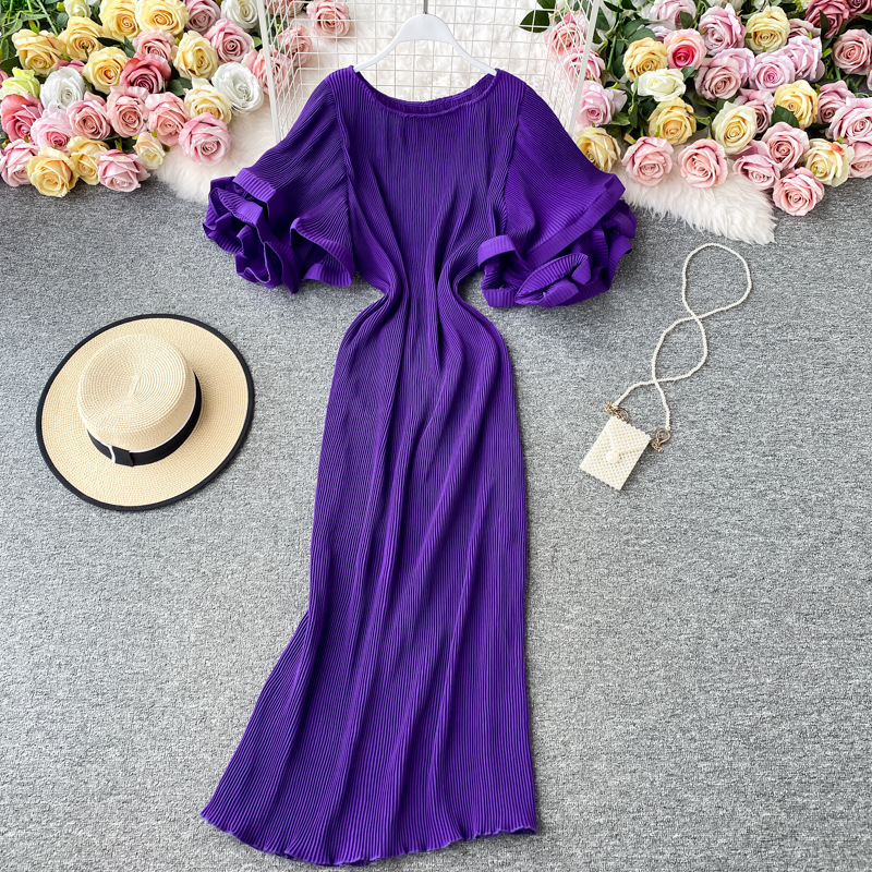 包郵便フランスキキョウアンドロメダ超仙森系ハスの葉の縁の大きなラッパ袖のワンピース