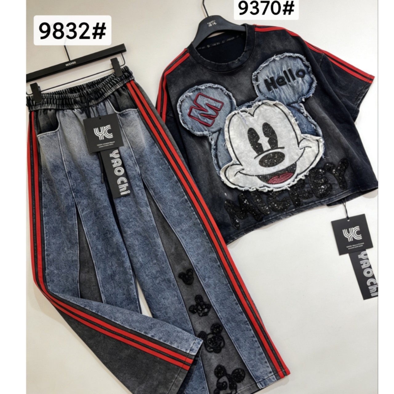 跨境欧美街头新潮卡通复古时尚春秋新款牛仔裤子女装休闲裤