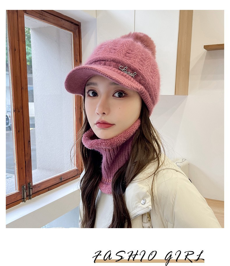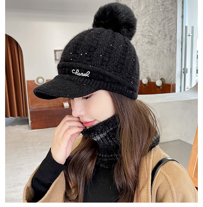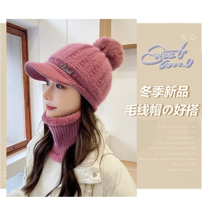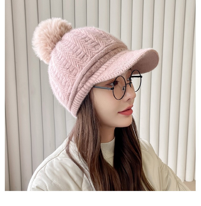 新型の帽子の女性秋冬の韓国版のファッションはウサギの毛のアヒルの舌の帽子に合わせて、厚いニットの毛糸の帽子をつけて保温します。