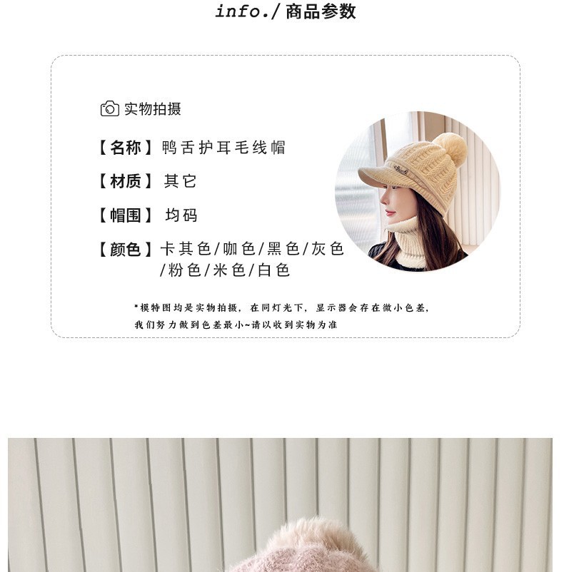 冬天帽子女加绒加厚保暖冬季2025新款户外骑车护耳针织毛线鸭舌帽
