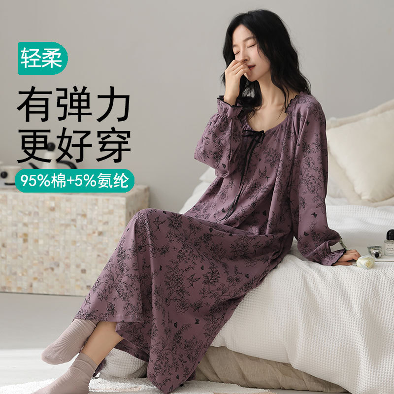 95爽棉睡裙女士秋冬季纯棉长袖连衣裙女生高级感可外穿睡衣家居服
