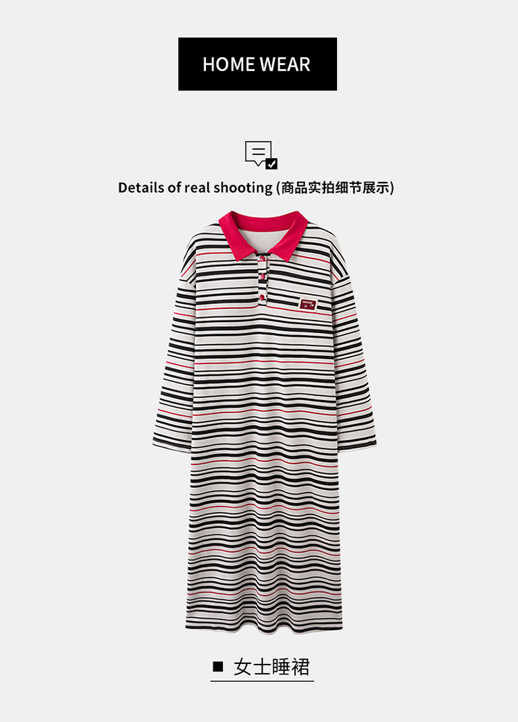 9870春秋季女款纯棉睡裙带胸垫睡衣家居服