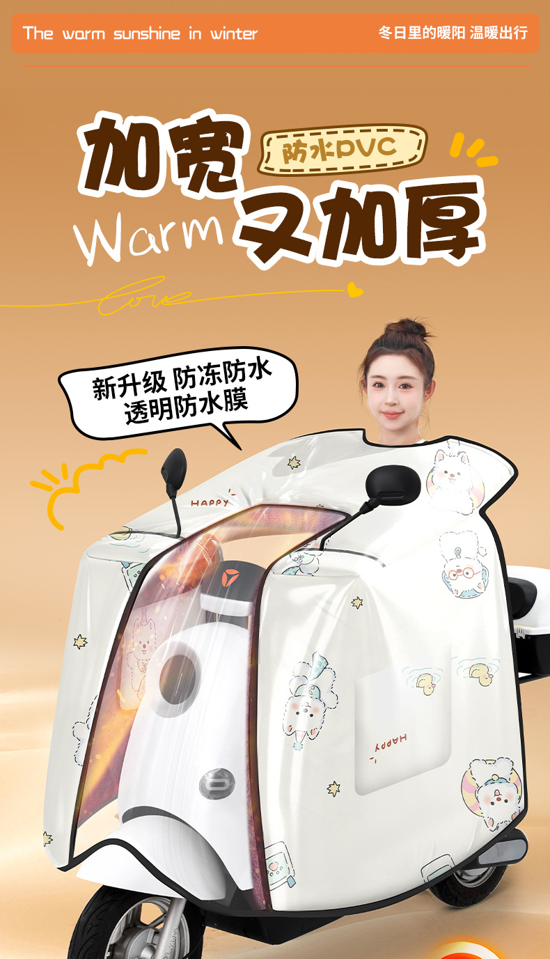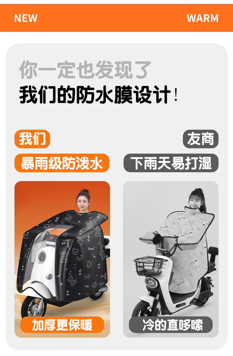 防水电动车挡风被秋冬季2025斗篷式加绒加厚保暖电瓶车防风被批发