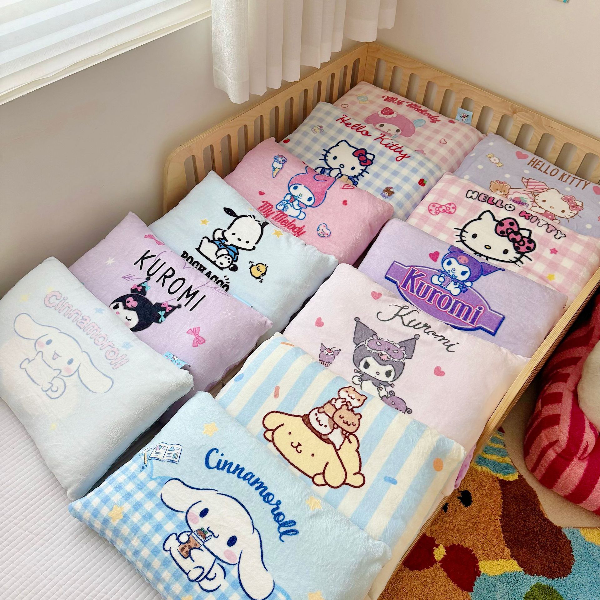 爆款卡通三丽鸥库洛米牛奶暖绒豆豆枕头芯儿童宝宝可拆洗午睡枕套