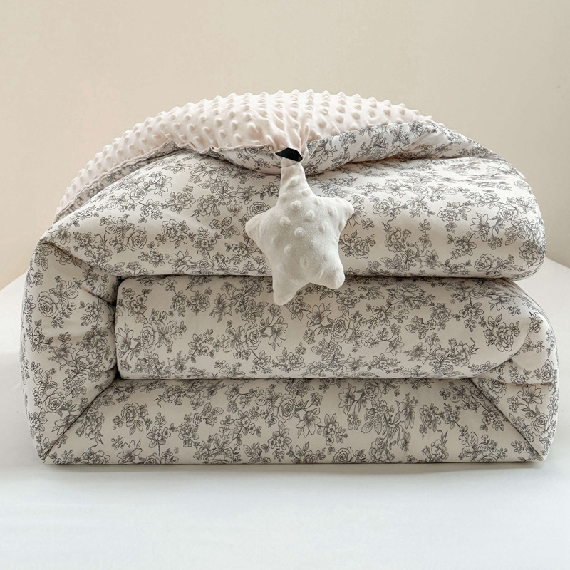 新款外贸全棉卡通碎花豆豆被秋冬加厚纯棉可机洗安抚豆豆绒盖毯被