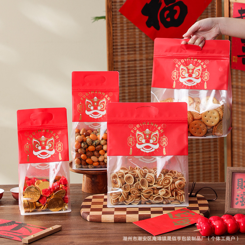 新年の雪花ショートニング包装袋牛圧延ビスケット太妃糖果自封手提げ袋トーストパン焙煎包装袋