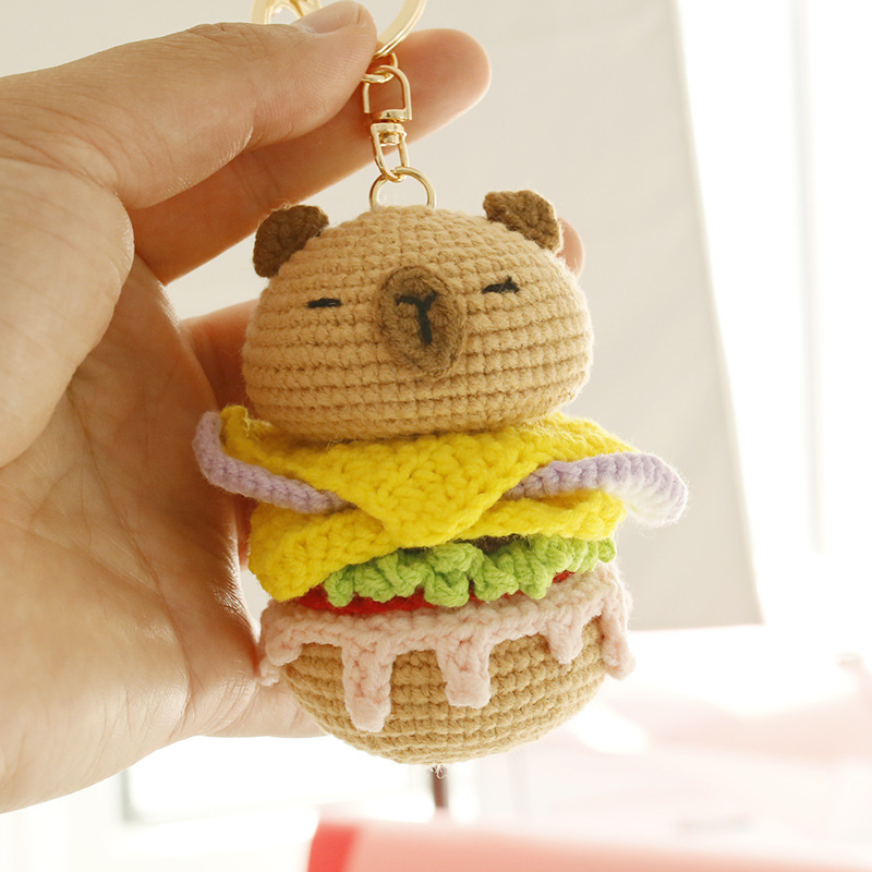 新品手編み変装カピバラぬいぐるみ毛糸かぎ針編みカピバラキーホルダー手作りストラップ