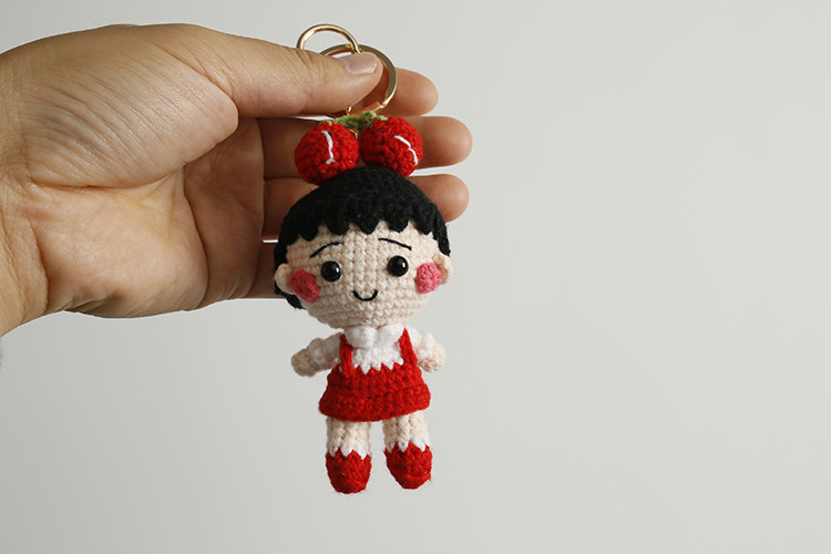创意手工编织小丸子玩偶 可爱毛线钩织人偶挂件 樱桃小丸子包挂饰