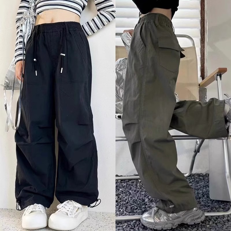女の子の服装のズボンの夏の新型の2025の新型の中で大きい子供の女の子のファッションのゆったりしているギャルの風織はカジュアルなズボンを持ちます。